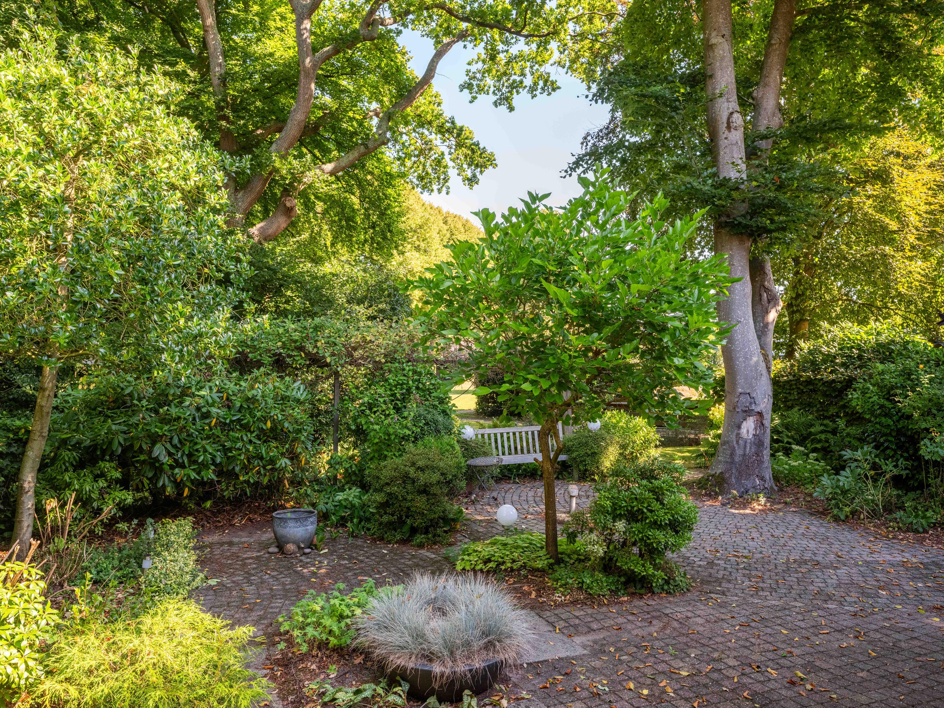 Through the large sliding doors, you step into the sunny, sheltered backyard, a wonderful place to enjoy peace and privacy, with a terrace and a view of the pond. The beautifully landscaped, sunny garden is an oasis of peace and privacy. The terrace borders the exclusive, communal park with ponds – a unique place where you can enjoy nature to the fullest. The park is exclusively accessible to local residents.