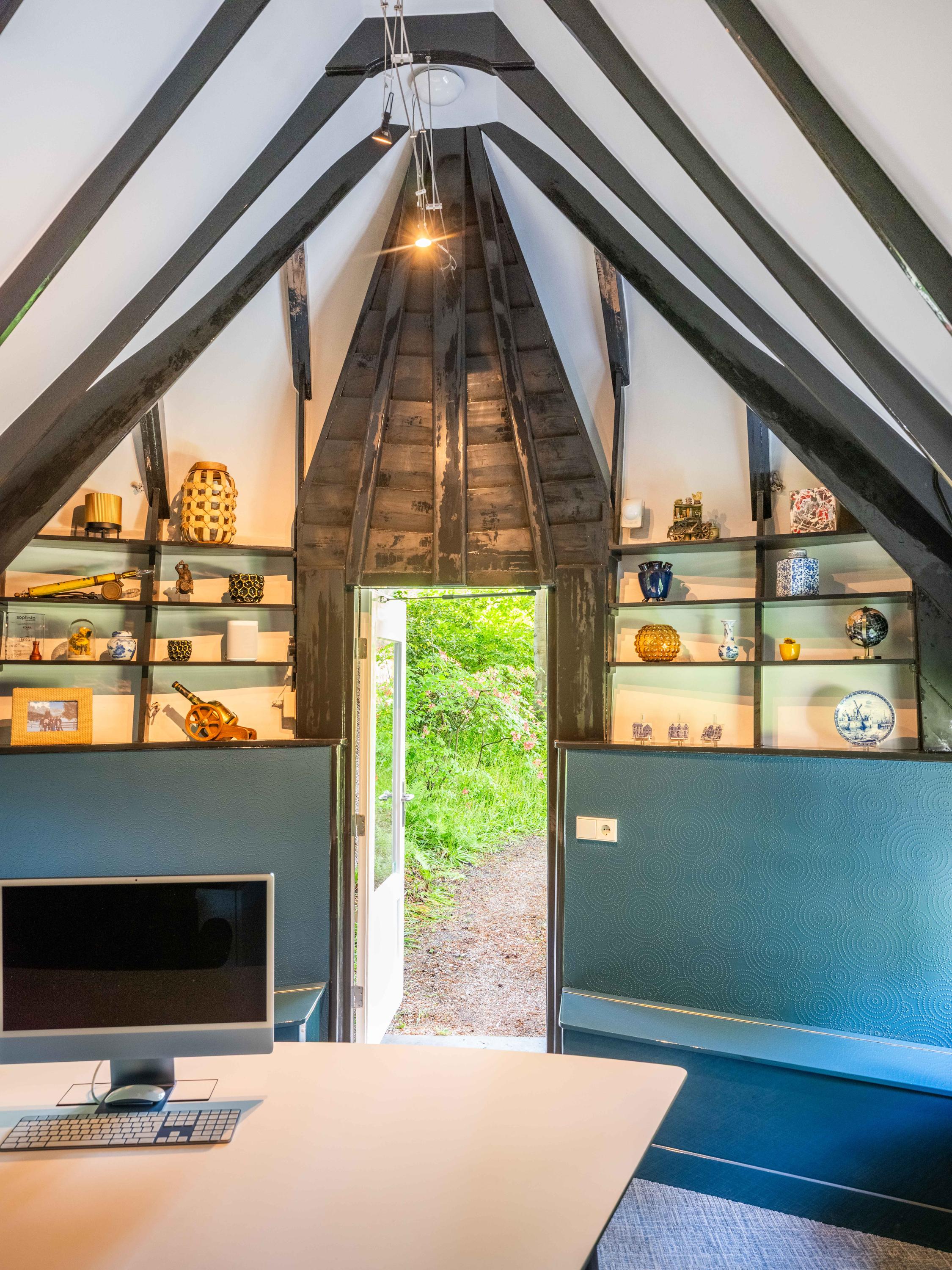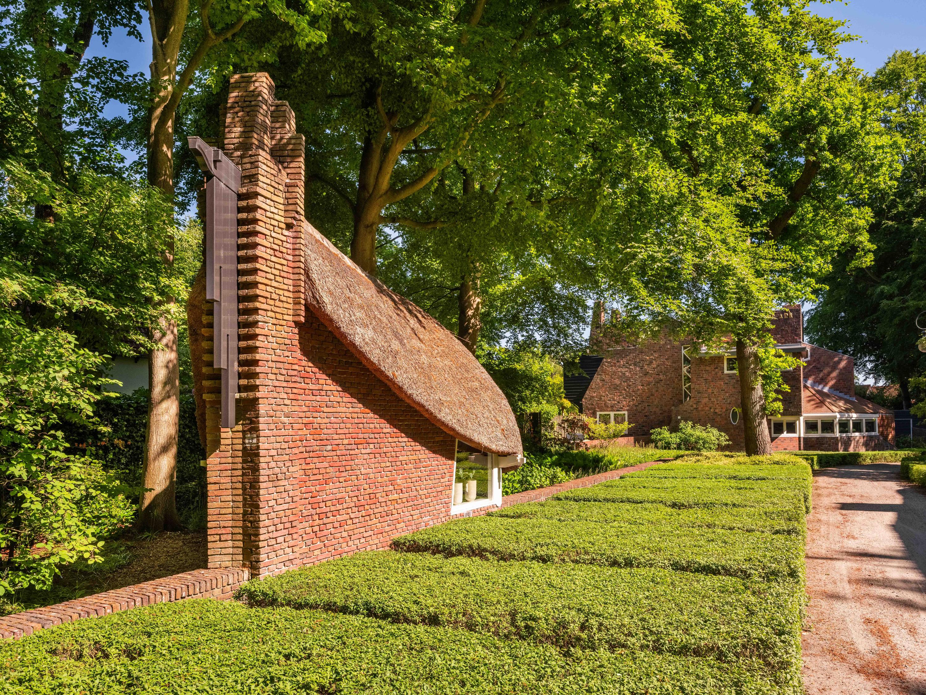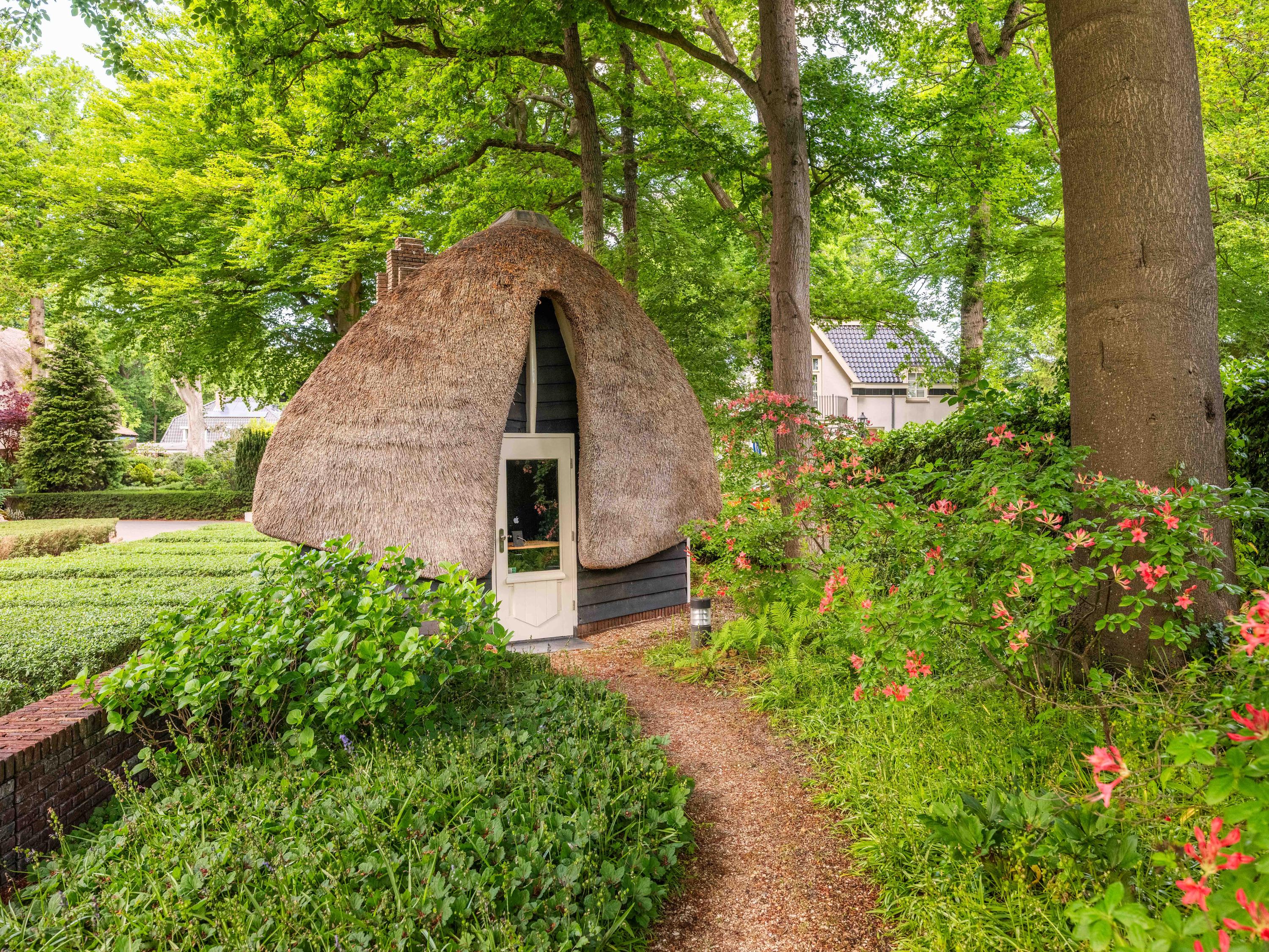 The icing on the cake is the ‘entrance’ cottage, located at the front of the plot, between the privet hedges. This characteristic building with a thatched roof evokes the image of a ‘sloop moored to the Ark’. A delightful workplace with authentic Amsterdam School elements.