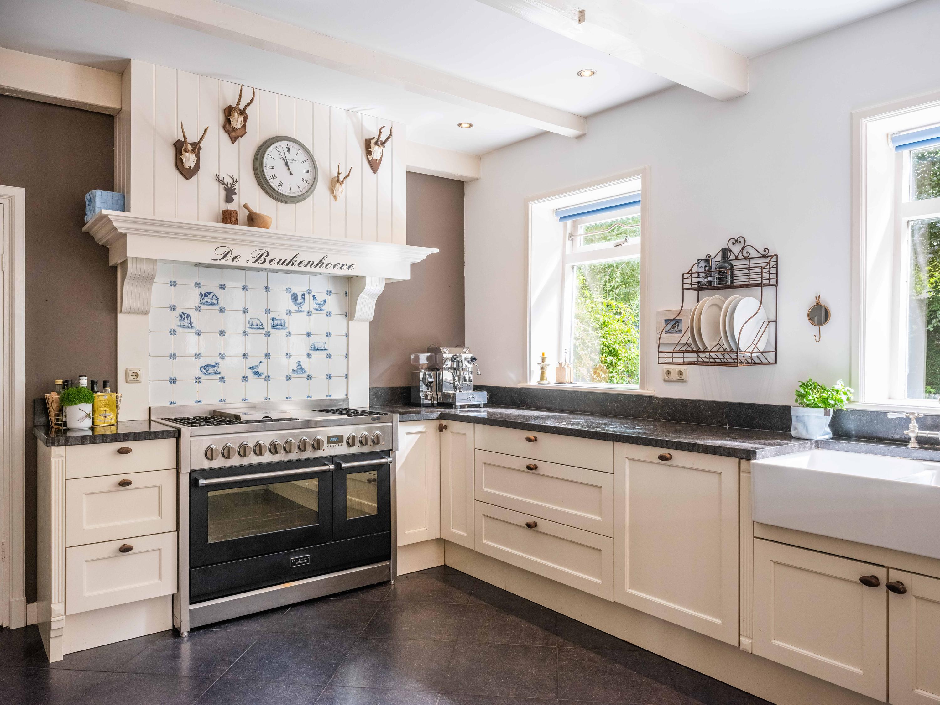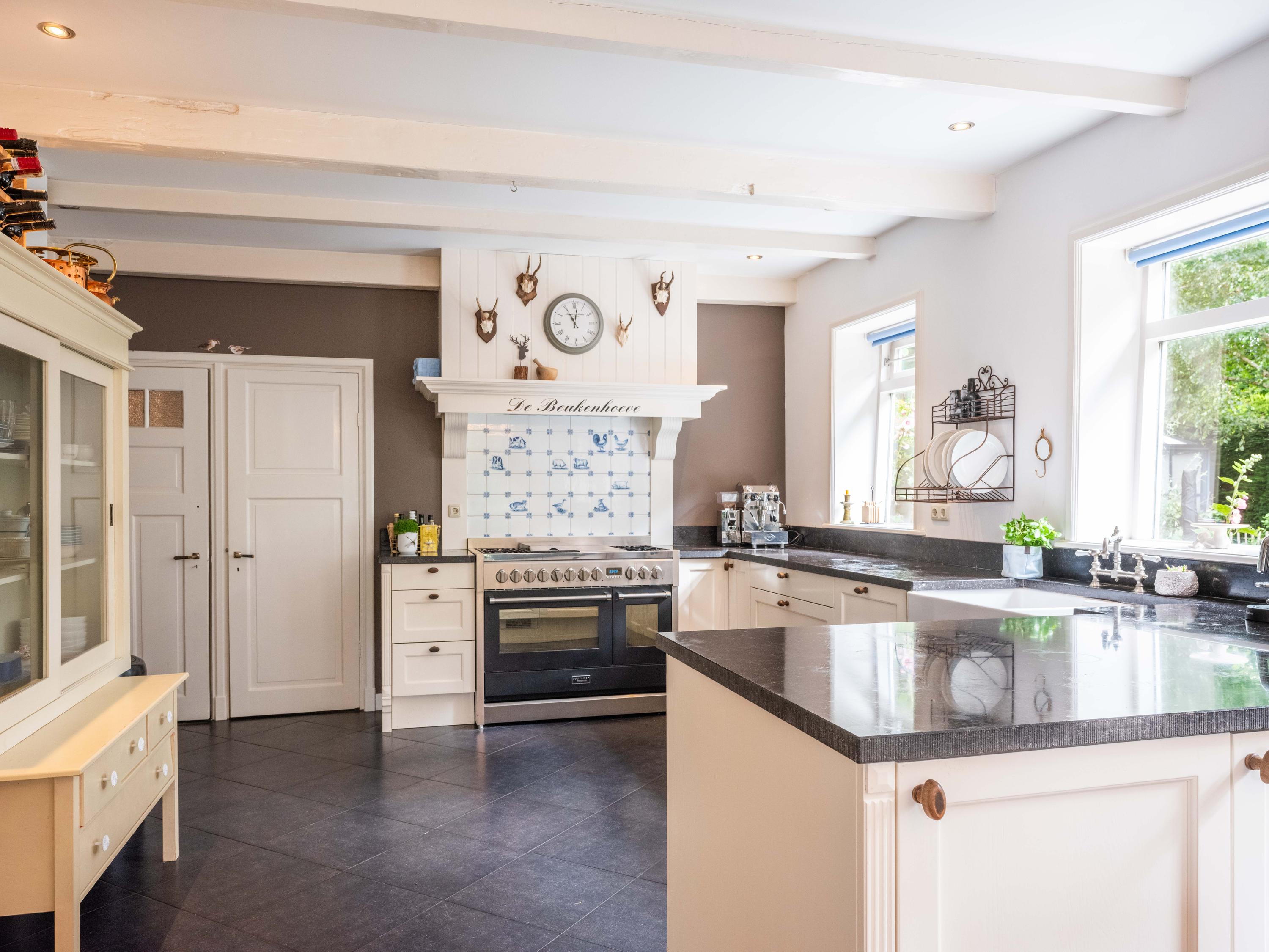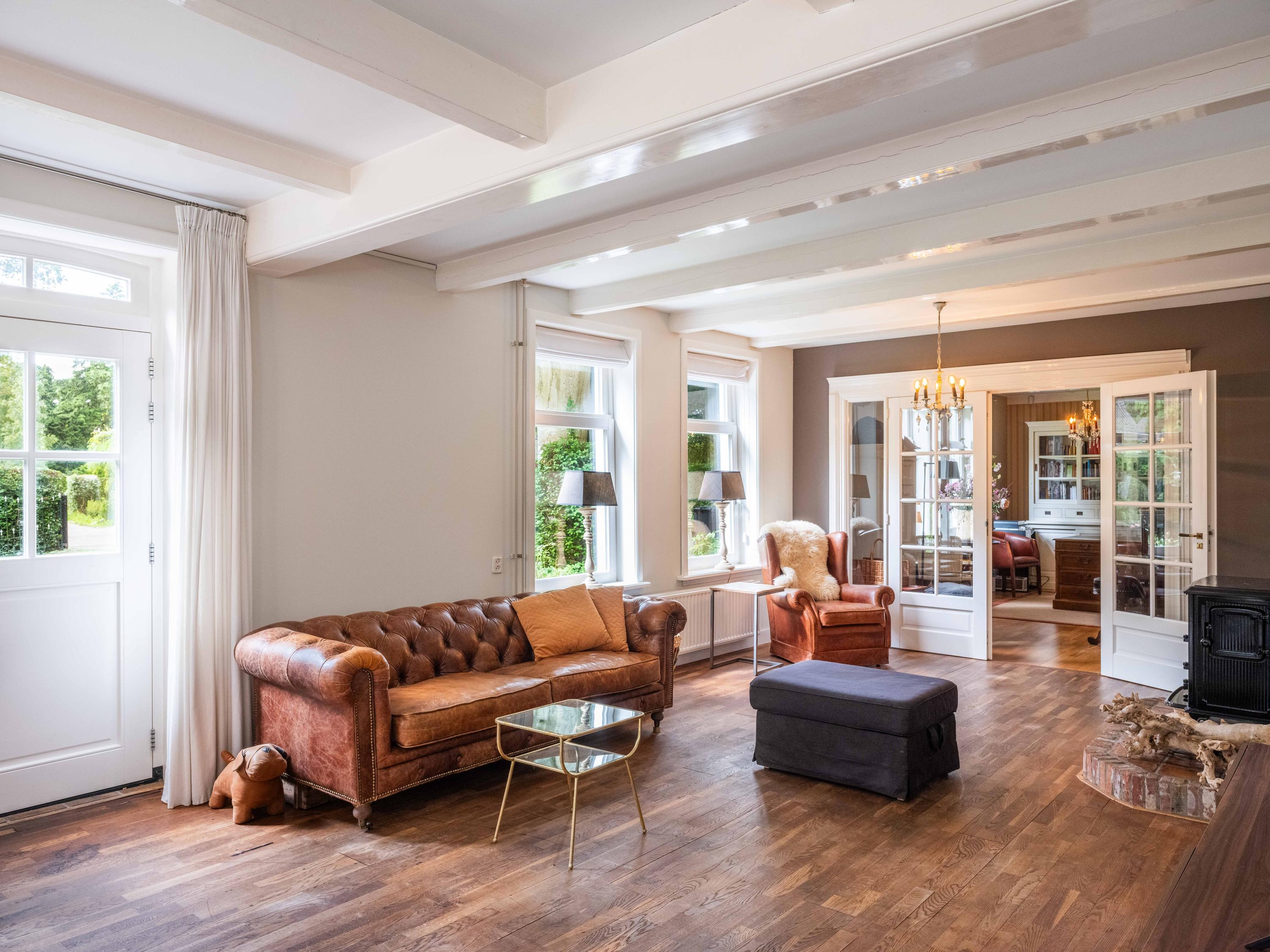 Beyond the main house, a holiday cottage stands behind the farmhouse, with a heated veranda, living area, open kitchen, three bedrooms and a private garden, creating opportunity for refined guest stays or rental income. Throughout, insulation, partial underfloor heating, natural ventilation and security reinforce daily comfort. A substantial wooden garage accommodates multiple cars, and sweeping lawns, terraces, and a greenhouse evoke a careful balance of form and rural tradition. This farmhouse Bergen Centre offers a rare equilibrium of history and present, privacy and village immediacy.
