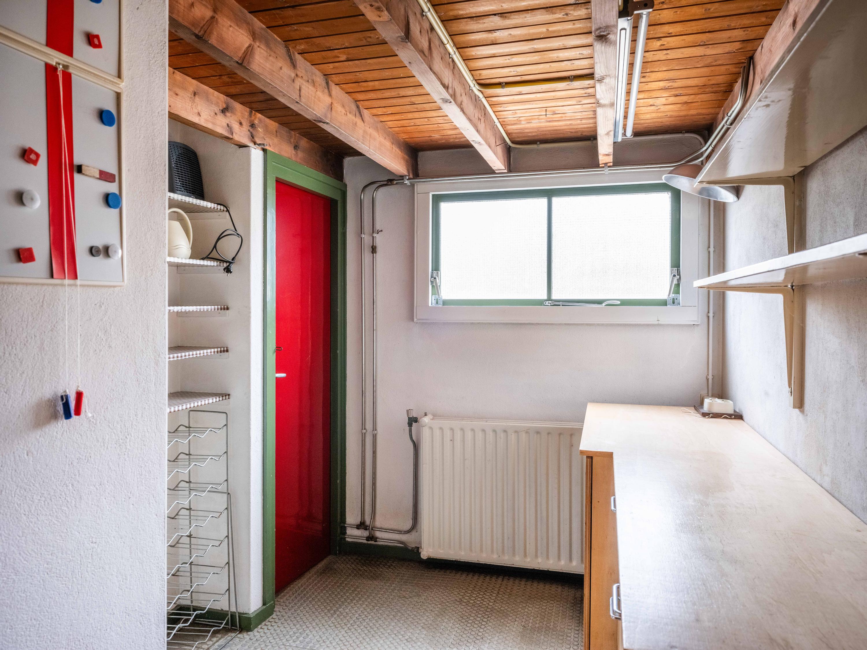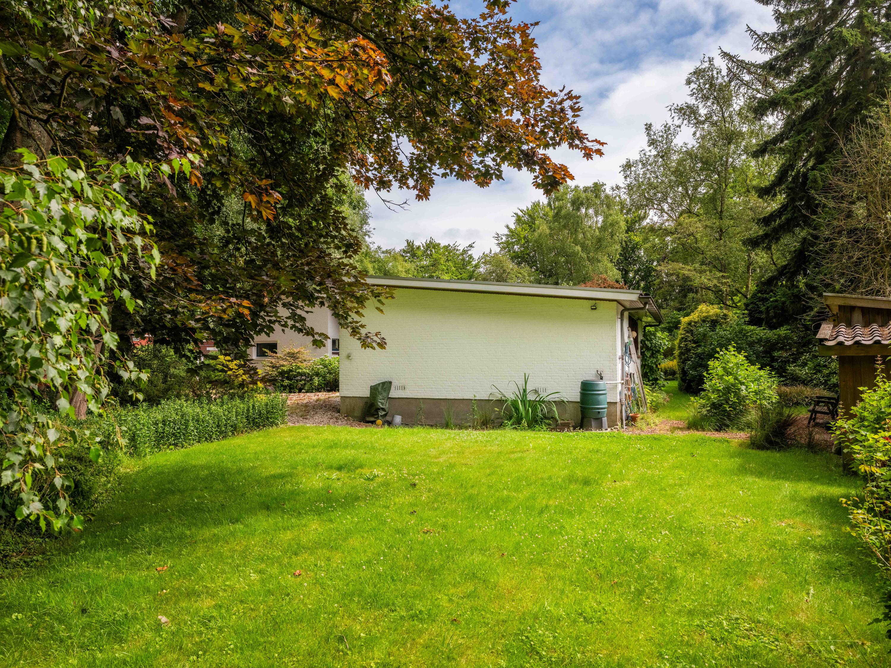 A mezzanine with a separate entrance accommodates a study or atelier. Further conveniences include a large storage room, double garage, wooden external shed, and ample off-street parking. The gardens evoke calm, while city centre amenities and forest walks are just moments away. The detached bungalow Bergen offers a rare convergence of privacy, authenticity, and a distinct architectural heritage.