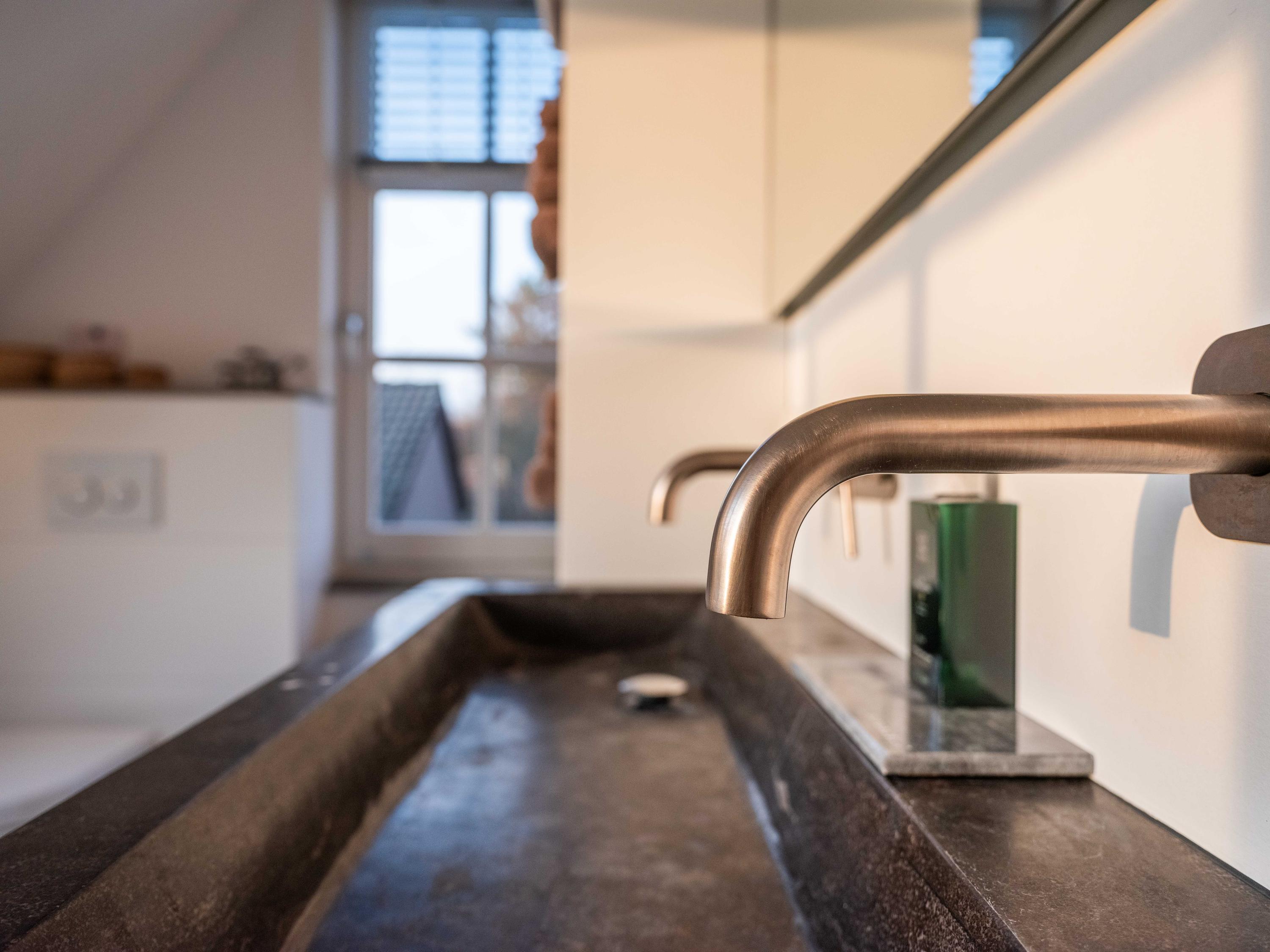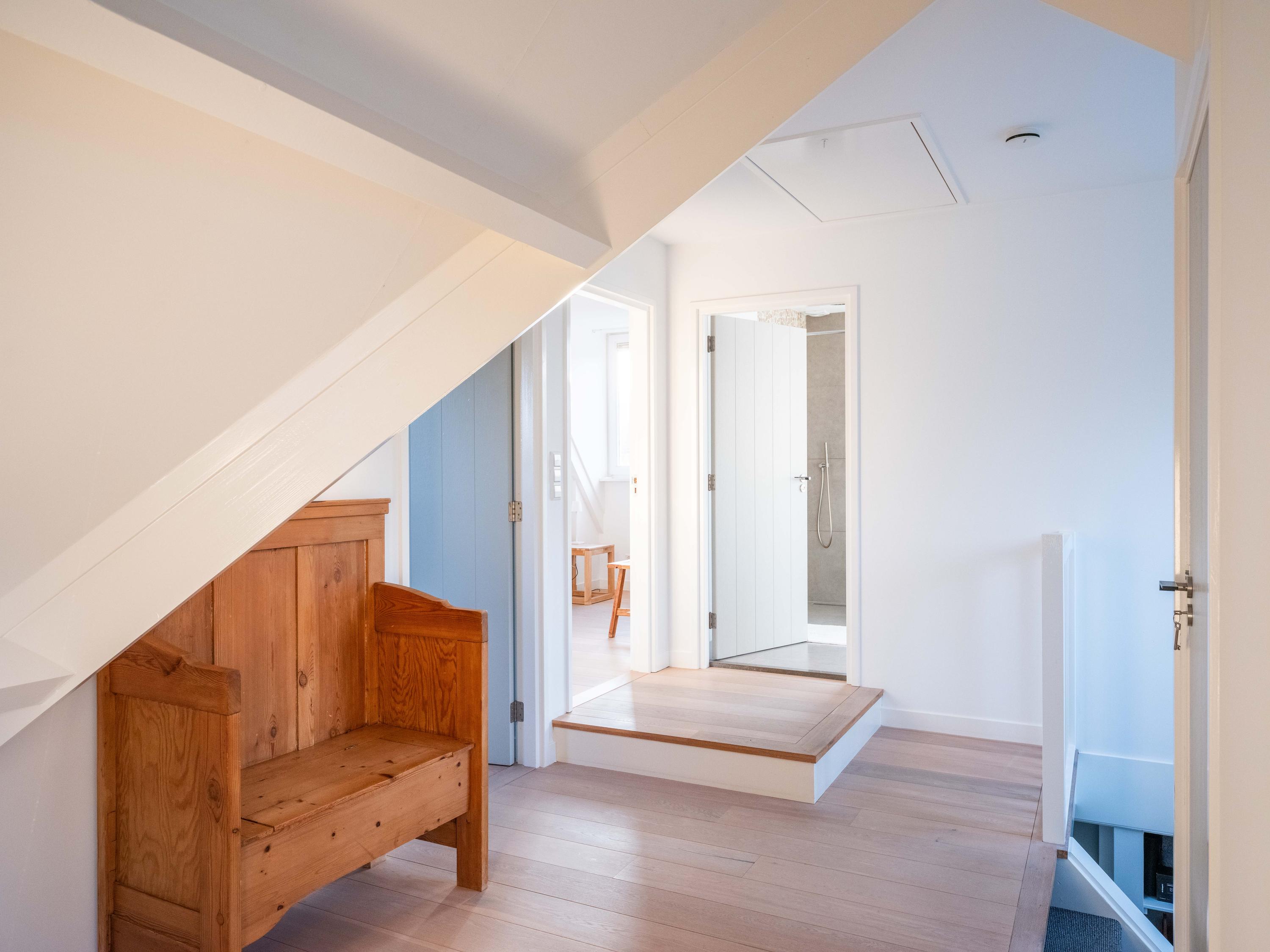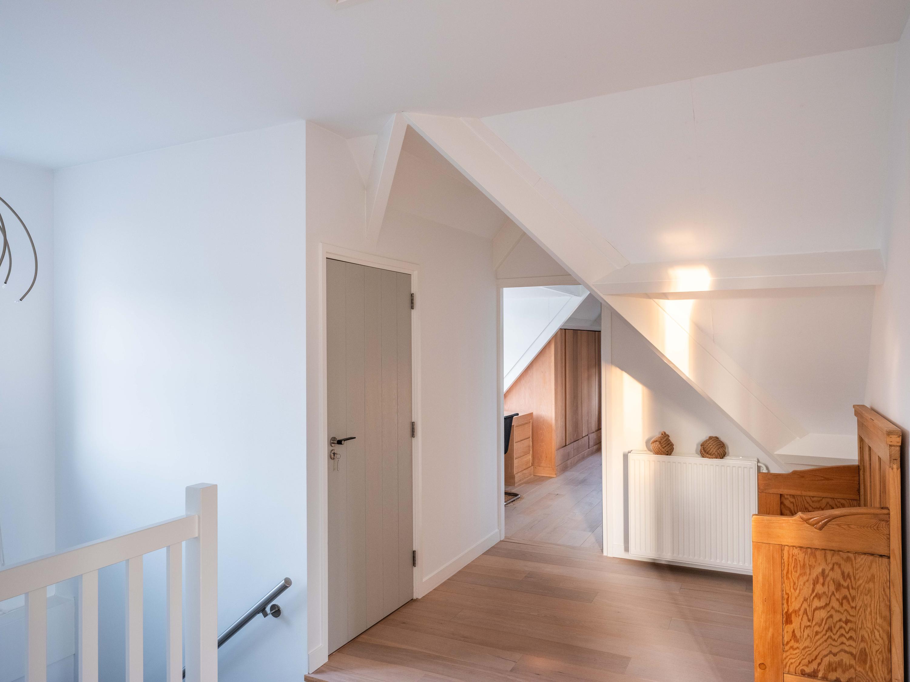 The first floor offers three well-sized bedrooms, each with its own atmosphere and fitted with custom wardrobes. The luxurious bathroom is stylishly finished with natural materials, and here too, quality and tranquility have been chosen. Throughout the house, it is clear that care and taste have been taken to create a harmonious whole.
