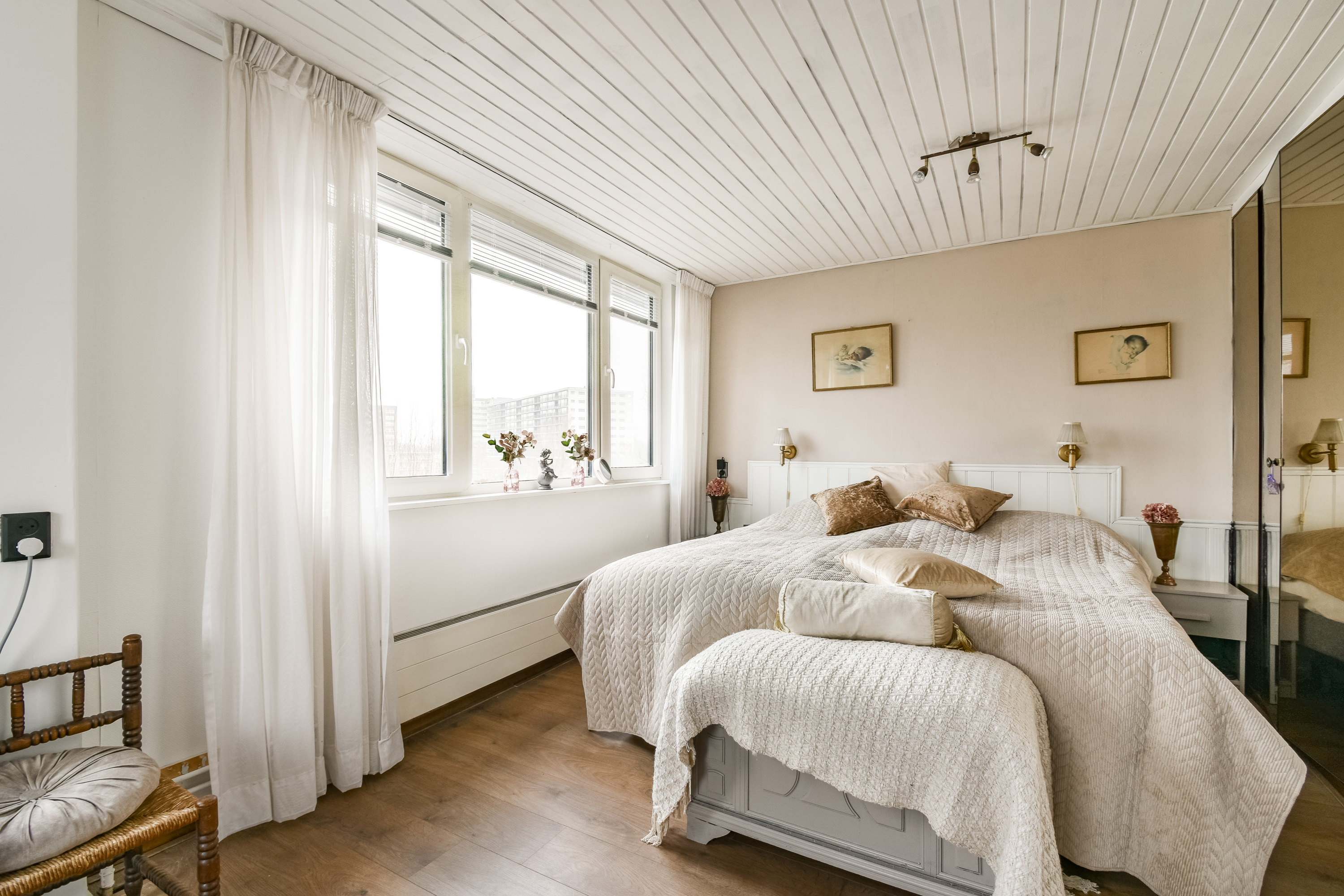 The spacious backyard faces north and offers wide views over greenery and the Lage Bergse Bos. A wonderful place to enjoy long summer evenings, drinks with friends, or simply to relax. There is also a jetty/deck at the water.