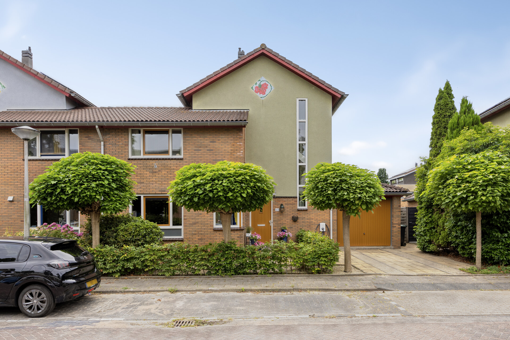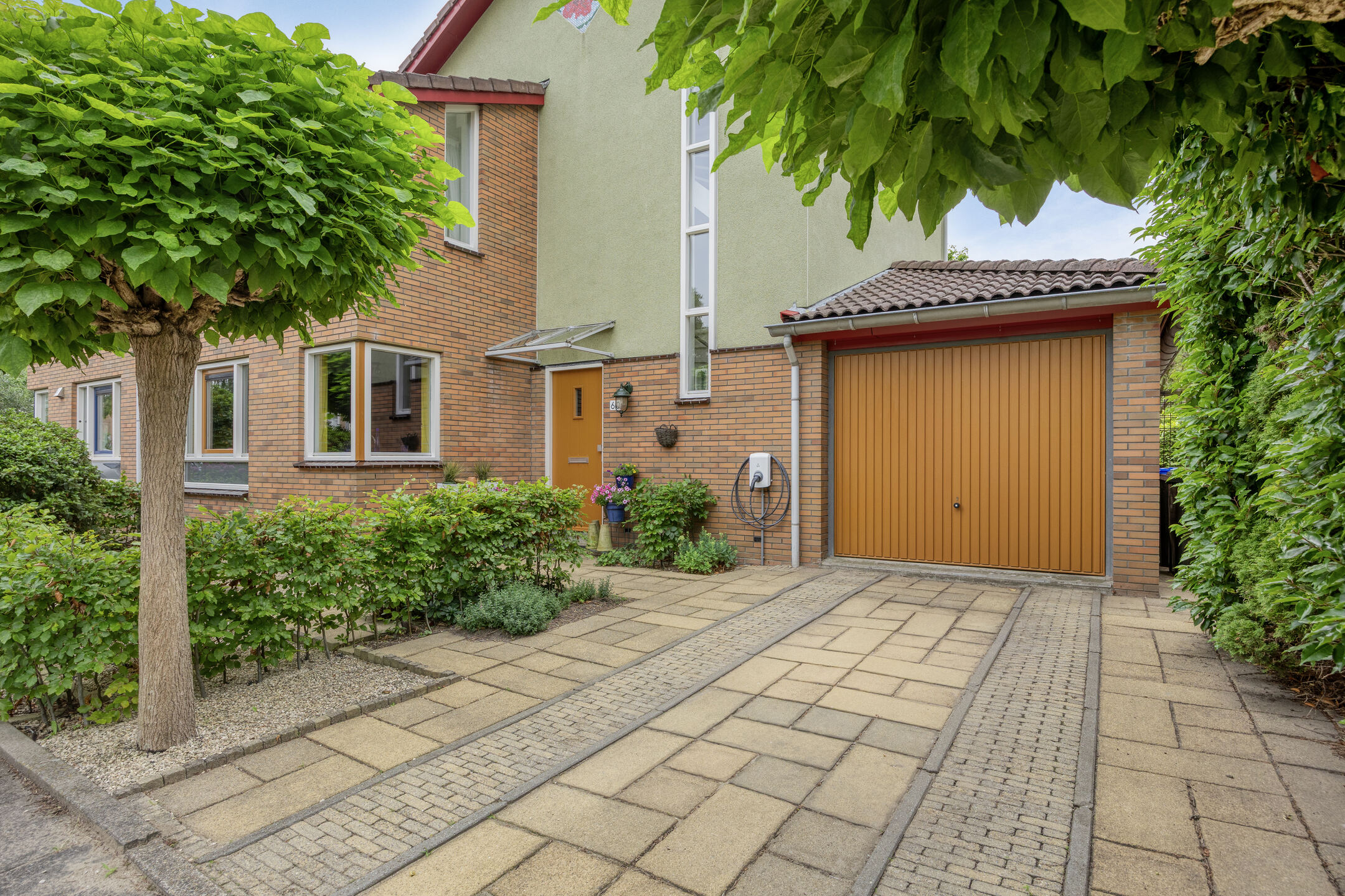 At the front, you’ll find a neat garden and a spacious paved driveway with room for one or two cars on private property. There is also a charging point for an electric car.