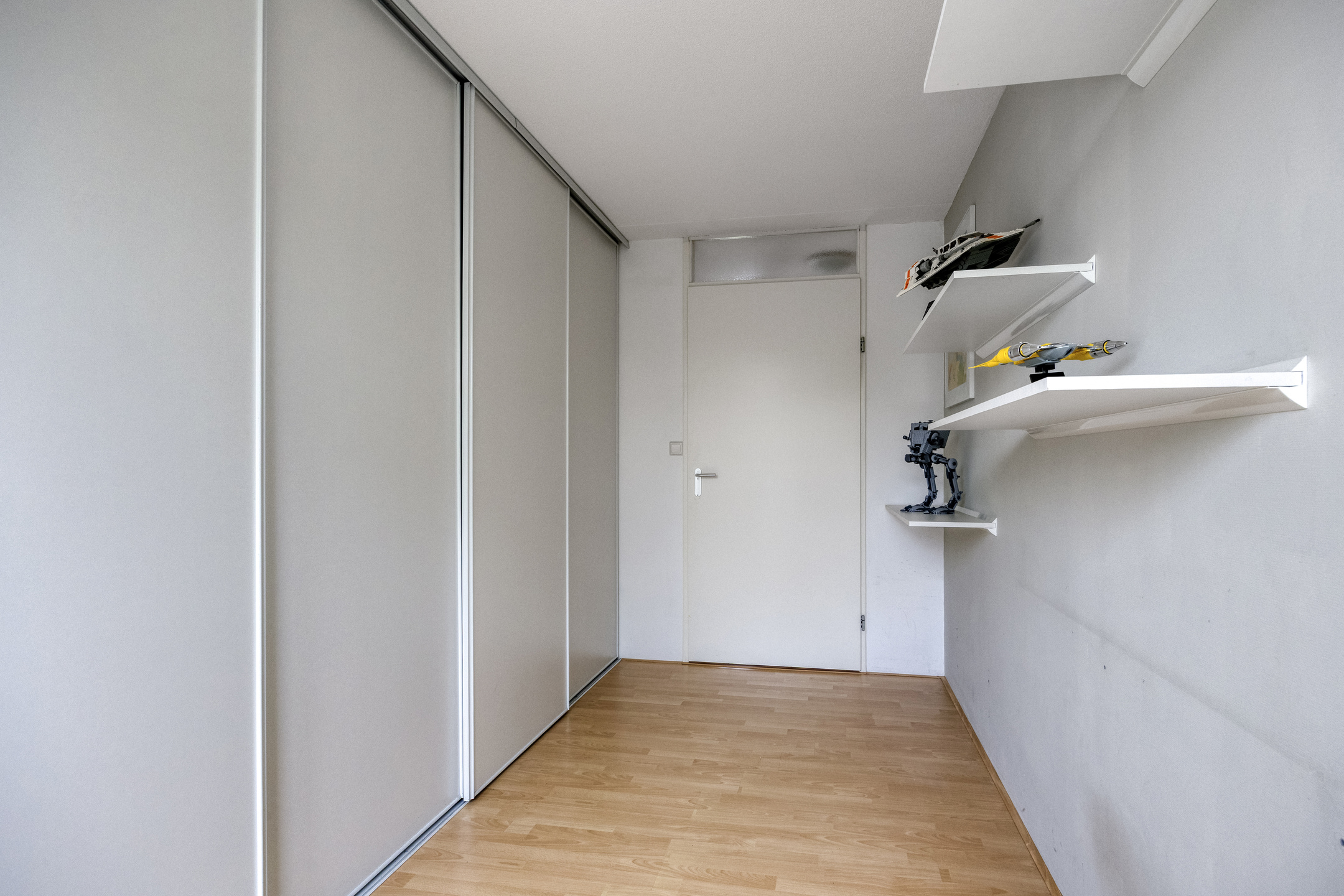 At the front is the main bedroom with a walk-in closet and an extra side window for additional daylight. At the rear are two more spacious bedrooms, both with built-in wardrobes.