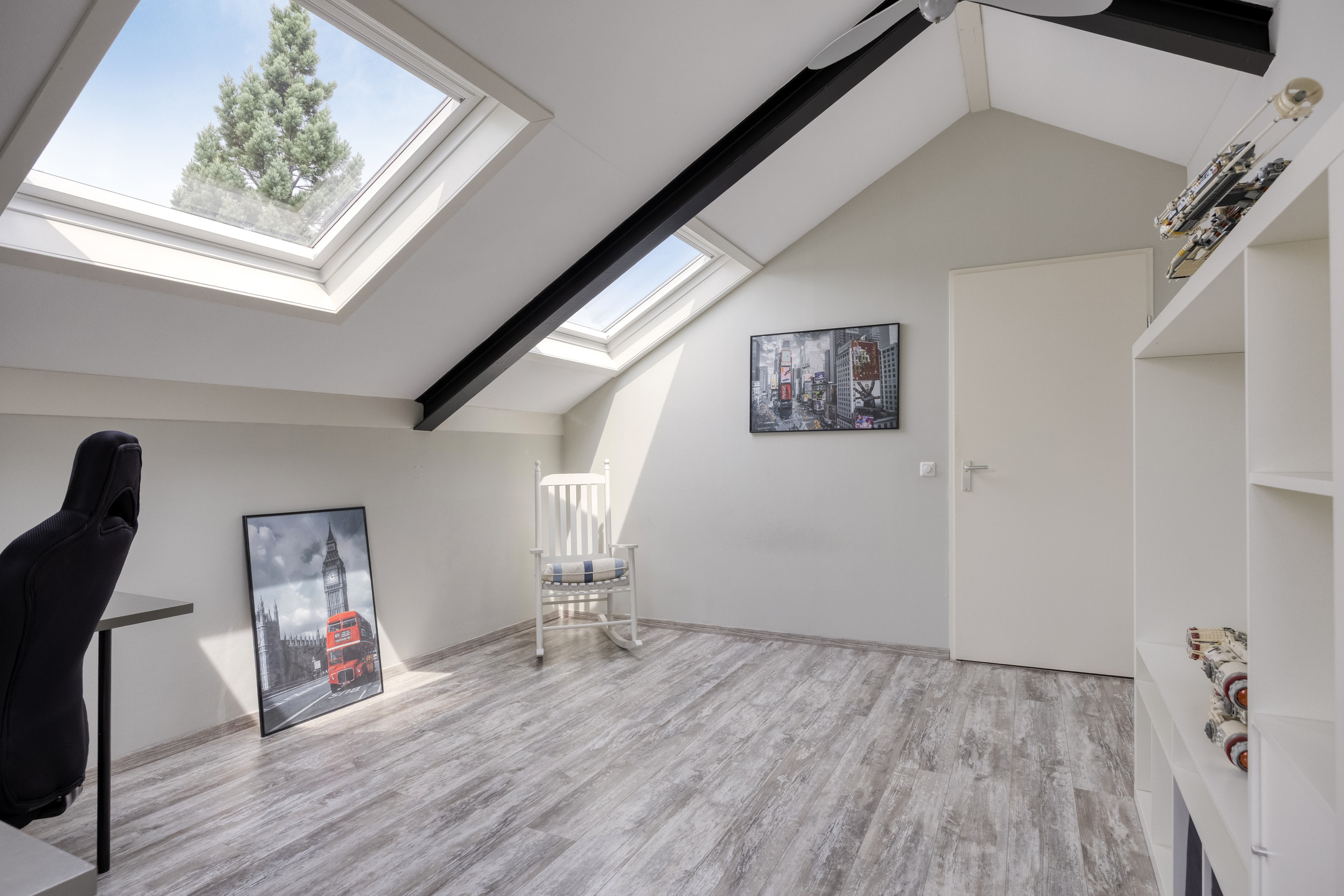 Landing with access to the fourth, very spacious bedroom, which features two skylights.