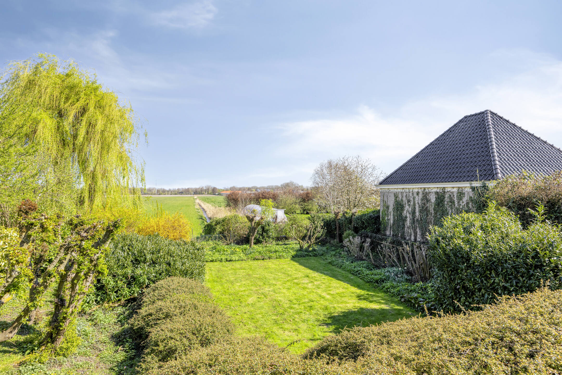 Outdoors, the garden, set across 830 m², is composed for privacy and a sense of natural retreat. Wide sliding doors unite the main living spaces with a deep, sunlit terrace, while automated awnings provide shade as needed. The setting is discreet yet within reach of local amenities, making this detached house Bleiswijk a rare opportunity for those who value space, sunlight, and village access.