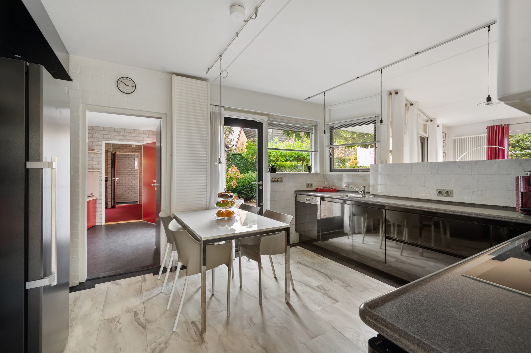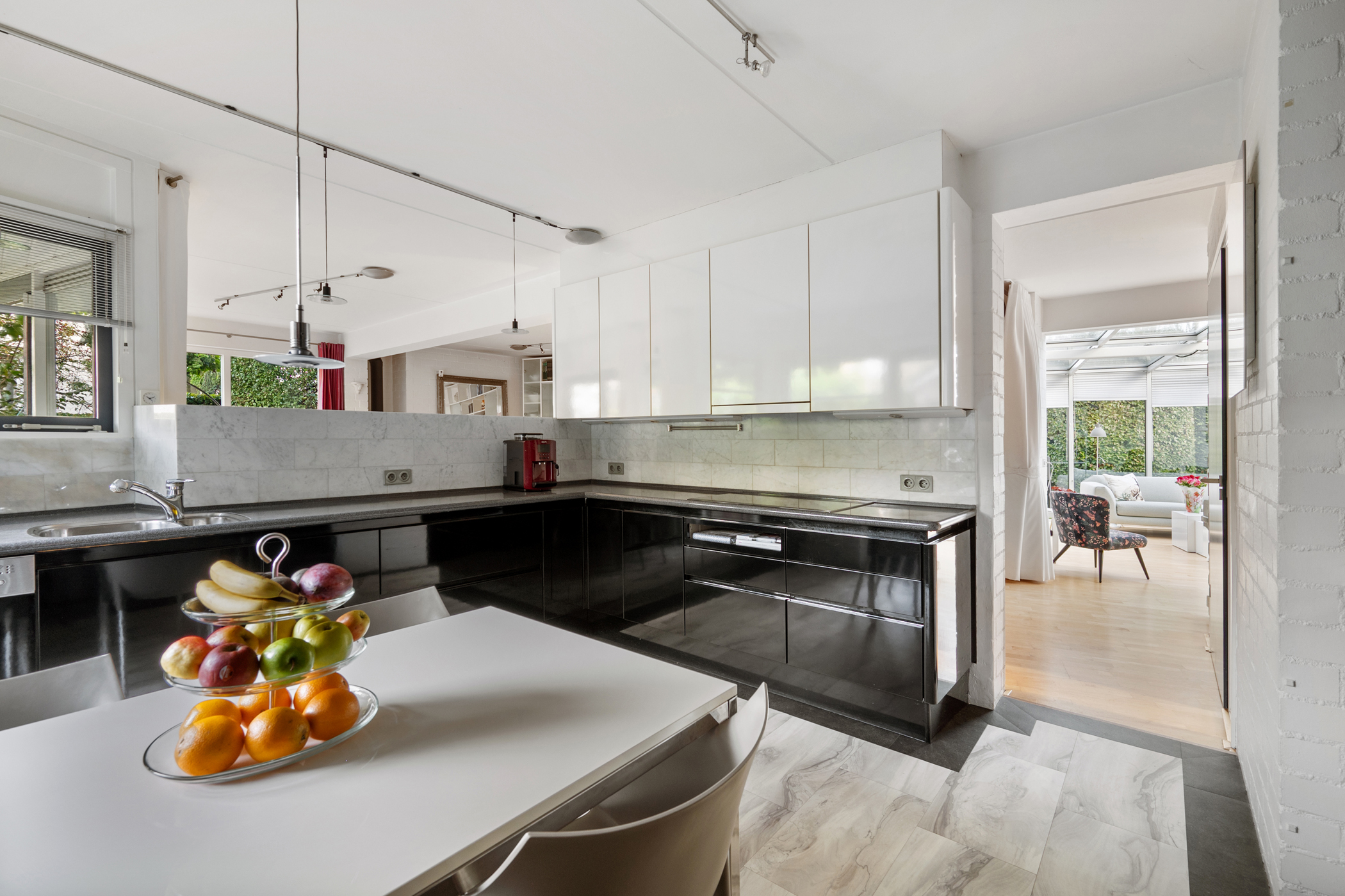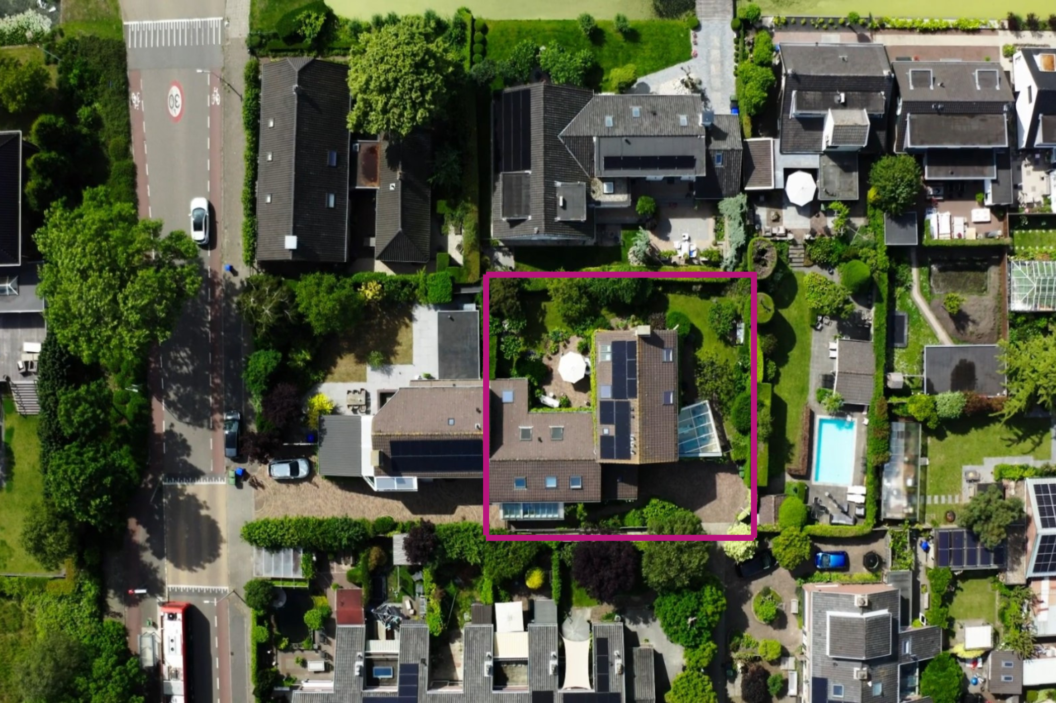 A very spacious villa (330 m²) designed by an architect with a truly unique character. With 6 bedrooms, 2 bathrooms, and an indoor multifunctional space (64–76 m²) with its own entrance. Quietly located, accessible from a child-friendly, low-traffic square. You can park your car in your own generous parking space.