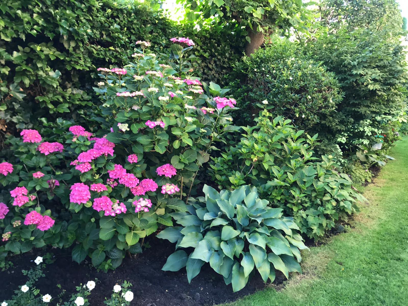 Beautifully landscaped all around, with the largest section facing southwest. Sunny, romantic, and full of flowers. Thanks to the various seating areas, there’s always a perfect spot to relax.