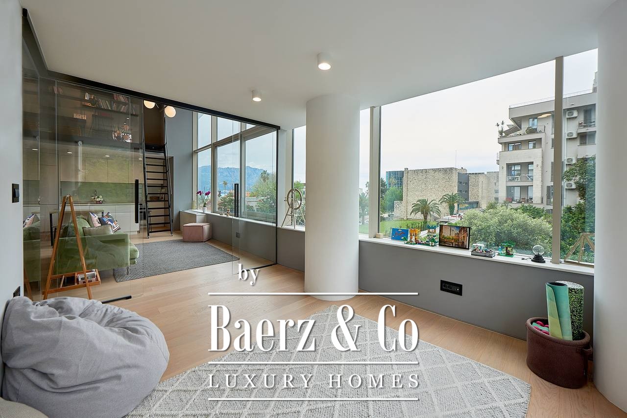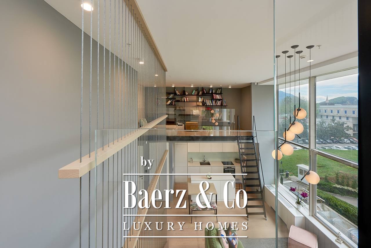 Structure of the apartment: living room with kitchen and dining table, 2 bedrooms, 2 bathrooms, a library and a terrace. The apartment has 90m2 and a 10m2 gallery. It is fully furnished and ready to move in. The apartment has a high-quality, designer renovation. Split system for cooling and heating, underfloor heating in the bathrooms, high-quality double-glazed windows with sliding systems. Full set of upholstered furniture and household appliances.