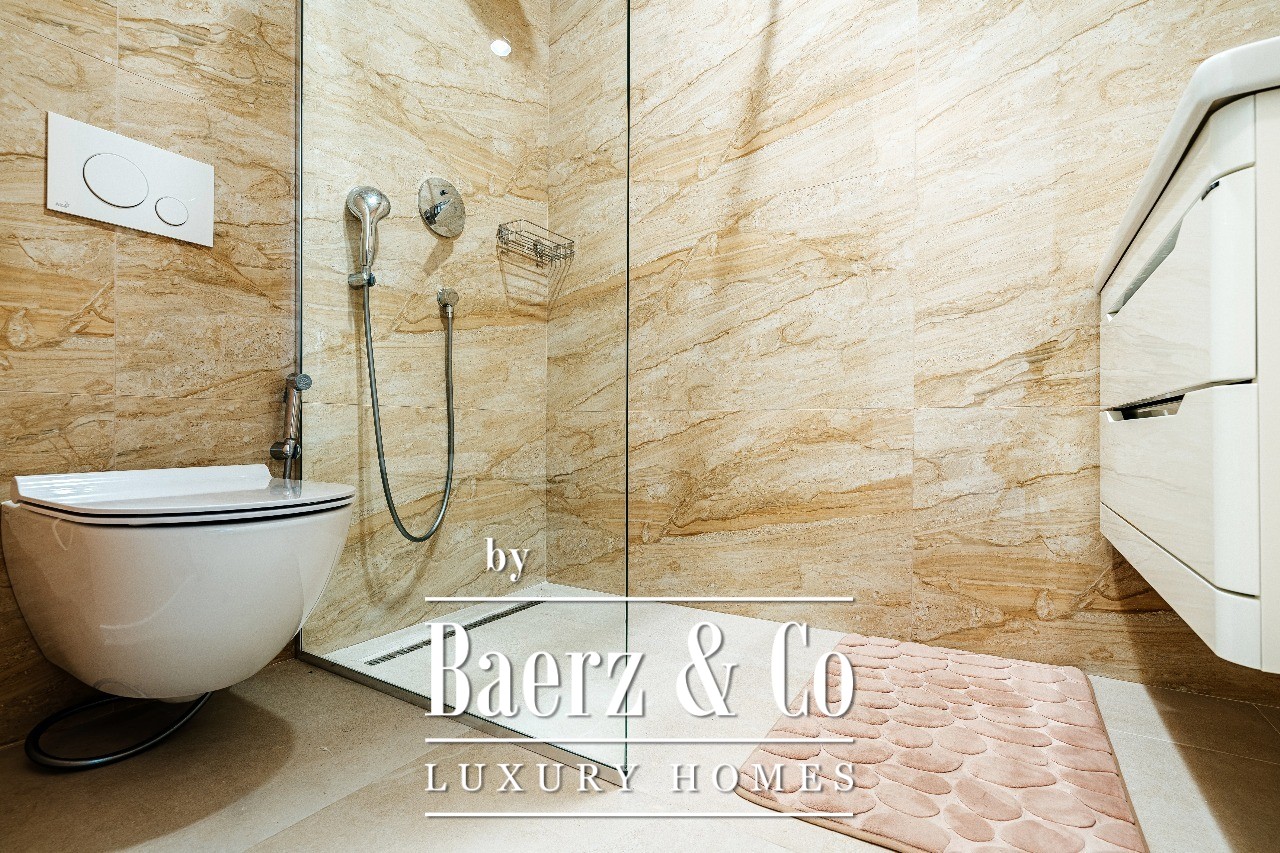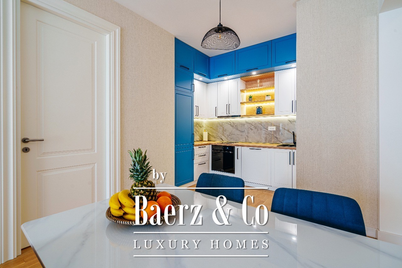 Structure of the apartment: living room with kitchen and dining table, 2 bedrooms, 2 bathrooms and a terrace. It has a view of the sea and the mountains around it. The apartment is fully furnished and ready for moving in.