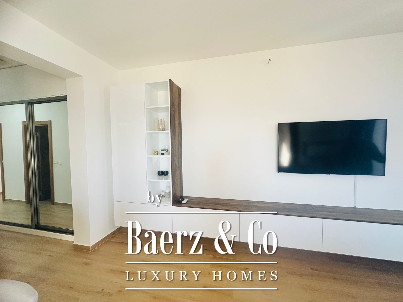 The interior layout sets a gentle pace, featuring a hallway, a living room integrated with kitchen and dining, two bedrooms, two bathrooms, and a terrace. From the terrace, the scenery opens to panoramic views of both the sea and surrounding mountains, inviting a sense of calm and expansiveness. The presence of an international school adjacent to the building, along with restaurants and grocery shops nearby, supports daily living as well as long or short term rental appeal.