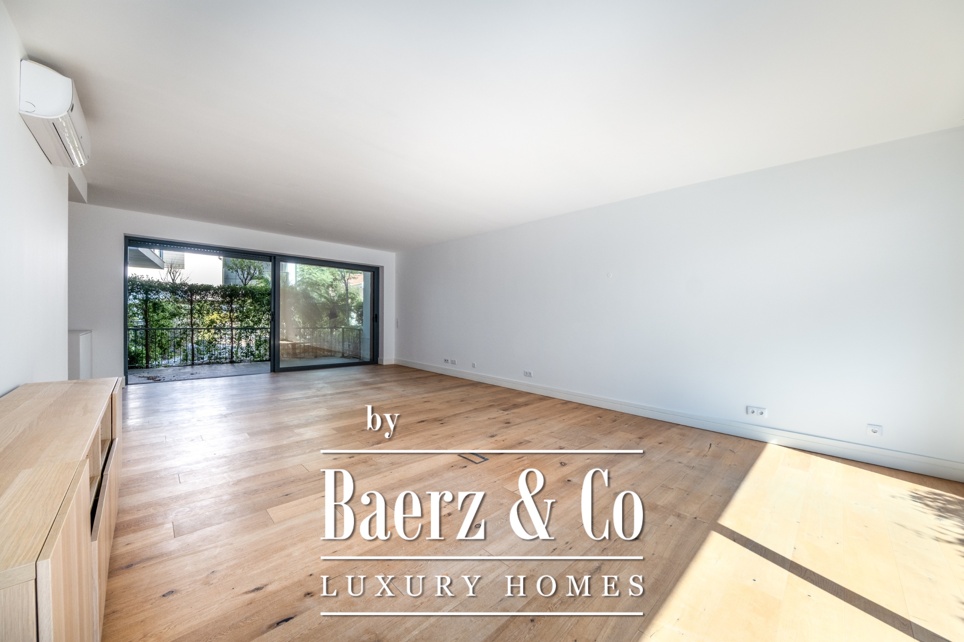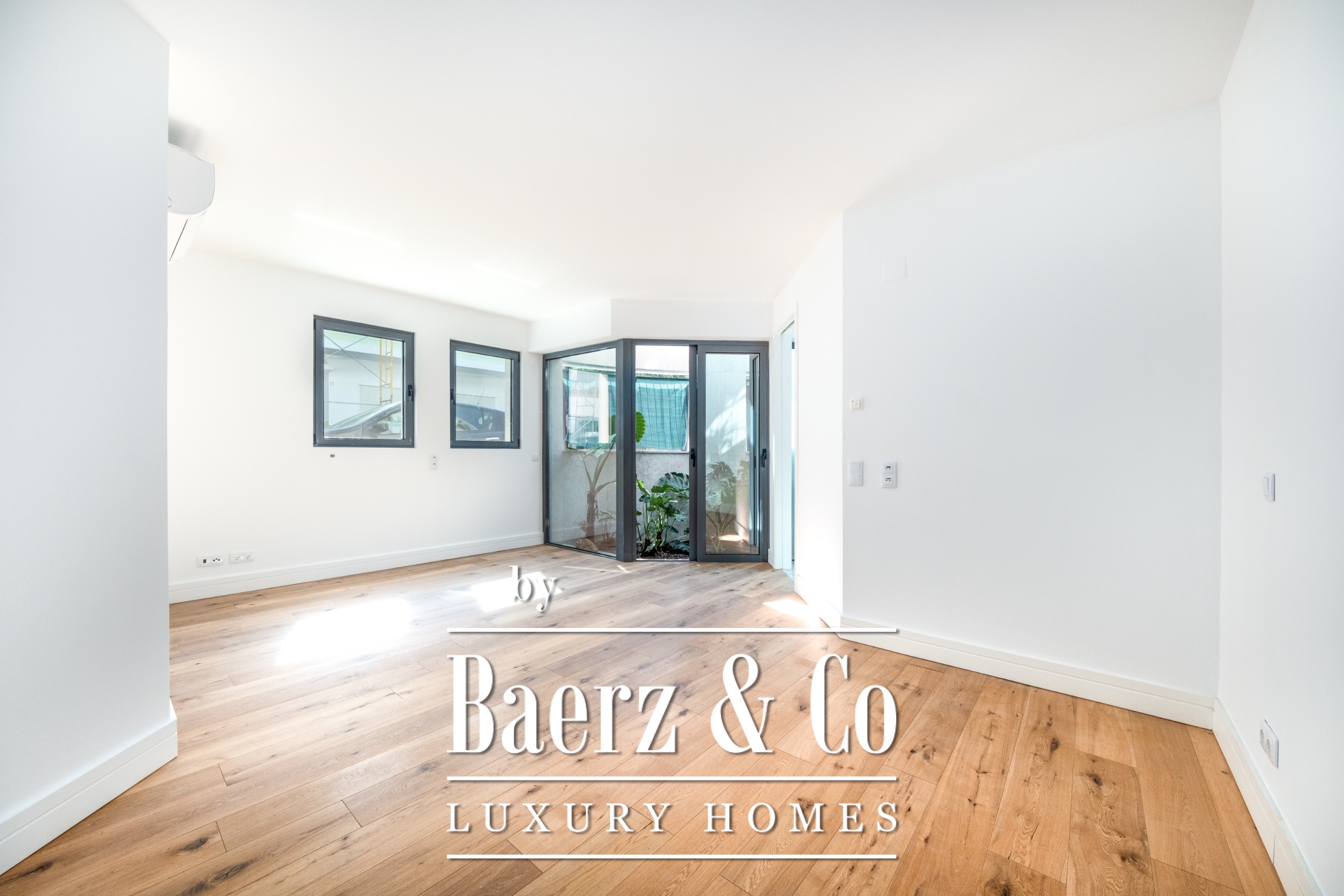 Apartment Cascais lies within the historic centre, offering 236 m² of considered living space complemented by a 53 m² dependent area. This four-bedroom residence is set in Edifício Teatro, built in 2020, presenting a thoughtful layout for those who value openness and privacy alike. The entrance hall leads to a guest bathroom, then unfolds to a living room opening onto a small garden and an adjacent dining room with a private terrace. Each room, including the four suites, is equipped with air conditioning, while the master suite includes a walk-in closet. Electric shutters add another layer of discretion and ease.