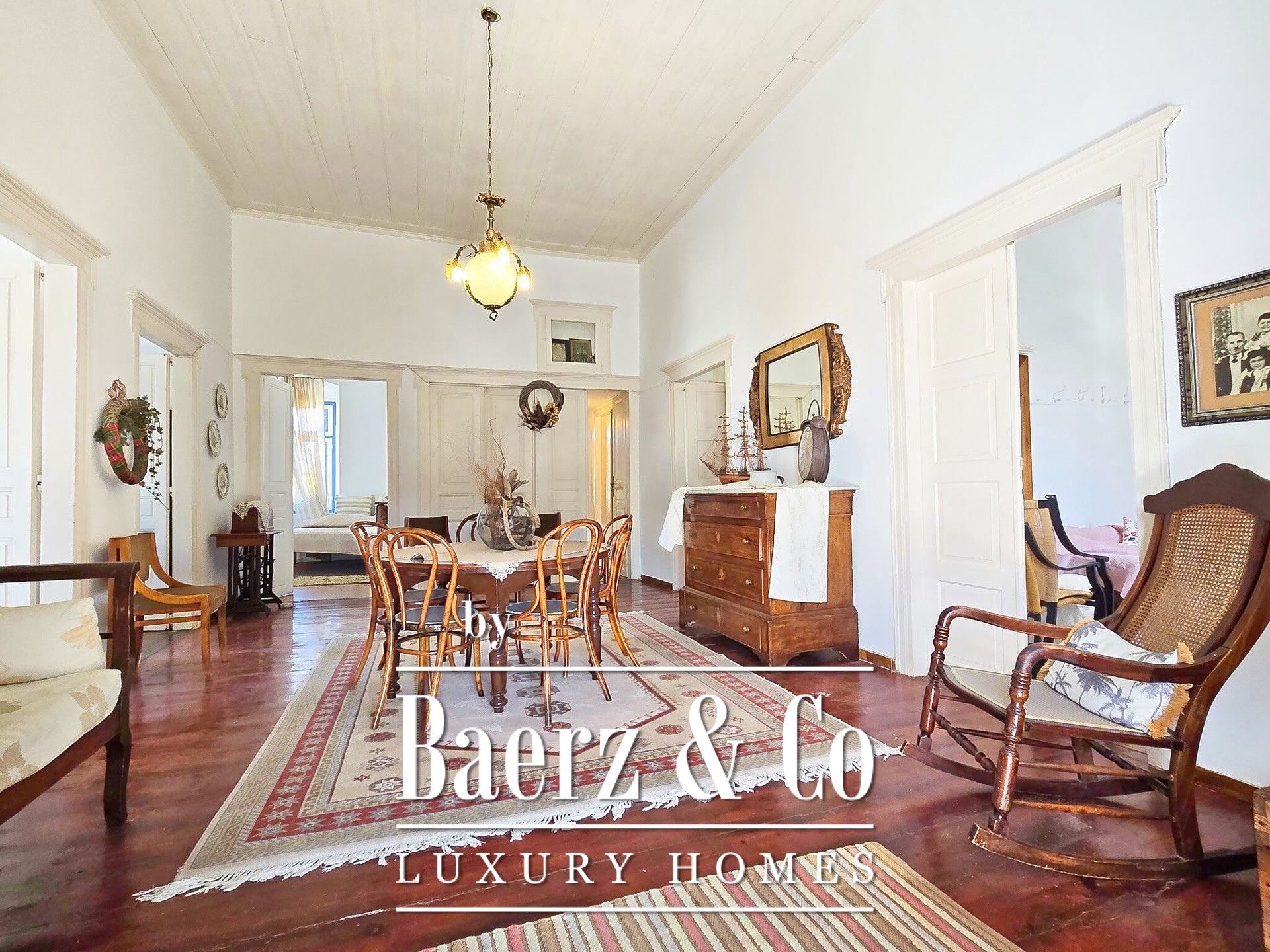 apartment we will encounter a comfortable and high-ceilinged living room. From there we are led to the five well-designed rooms, the kitchen room and the 2 bathrooms. From the 3 rooms we have access to a terrace with a magnificent view of the sea and the port. Its unique location, spacious spaces and the historicity of the building make it a rare opportunity to live in history itself, without depriving oneself of the comfort of today.