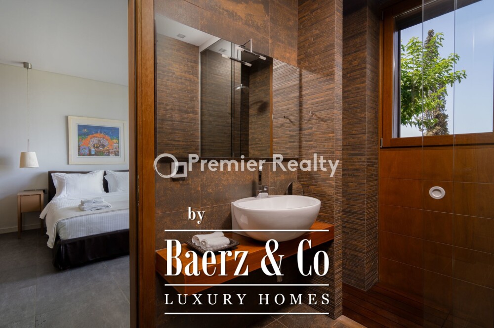 The property’s architecture balances sunlit volumes and shaded retreats. The master suite on the upper ground floor features a king-size bed, a lounge, a private heated plunge pool, a walk-in closet, a private office, and an en-suite bathroom for secluded comfort. Additional bedrooms enjoy spa-style bathrooms, garden vistas, and direct outdoor access. A separate staff studio ensures discretion and service.