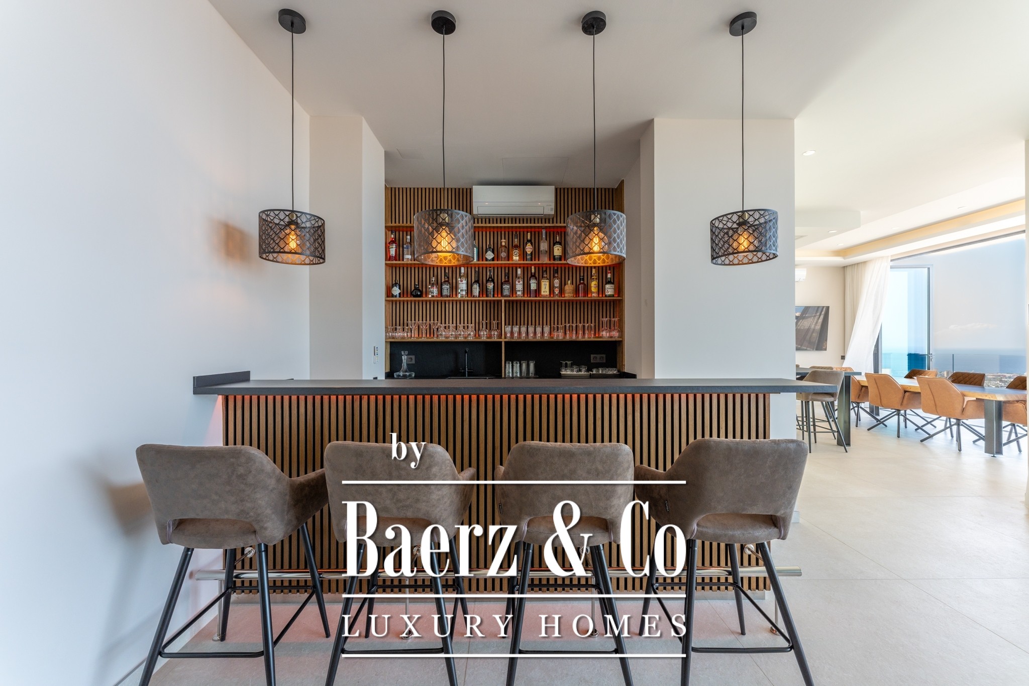 On the ground floor, you will find one of the bedrooms, a spacious living room with a bar for entertainment and a sleek designer kitchen, all finished to an impeccable standard. The villa has a total of 4 spacious en-suite bedrooms and a total of 6 beautiful bathrooms and a guest apartment with kitchen.