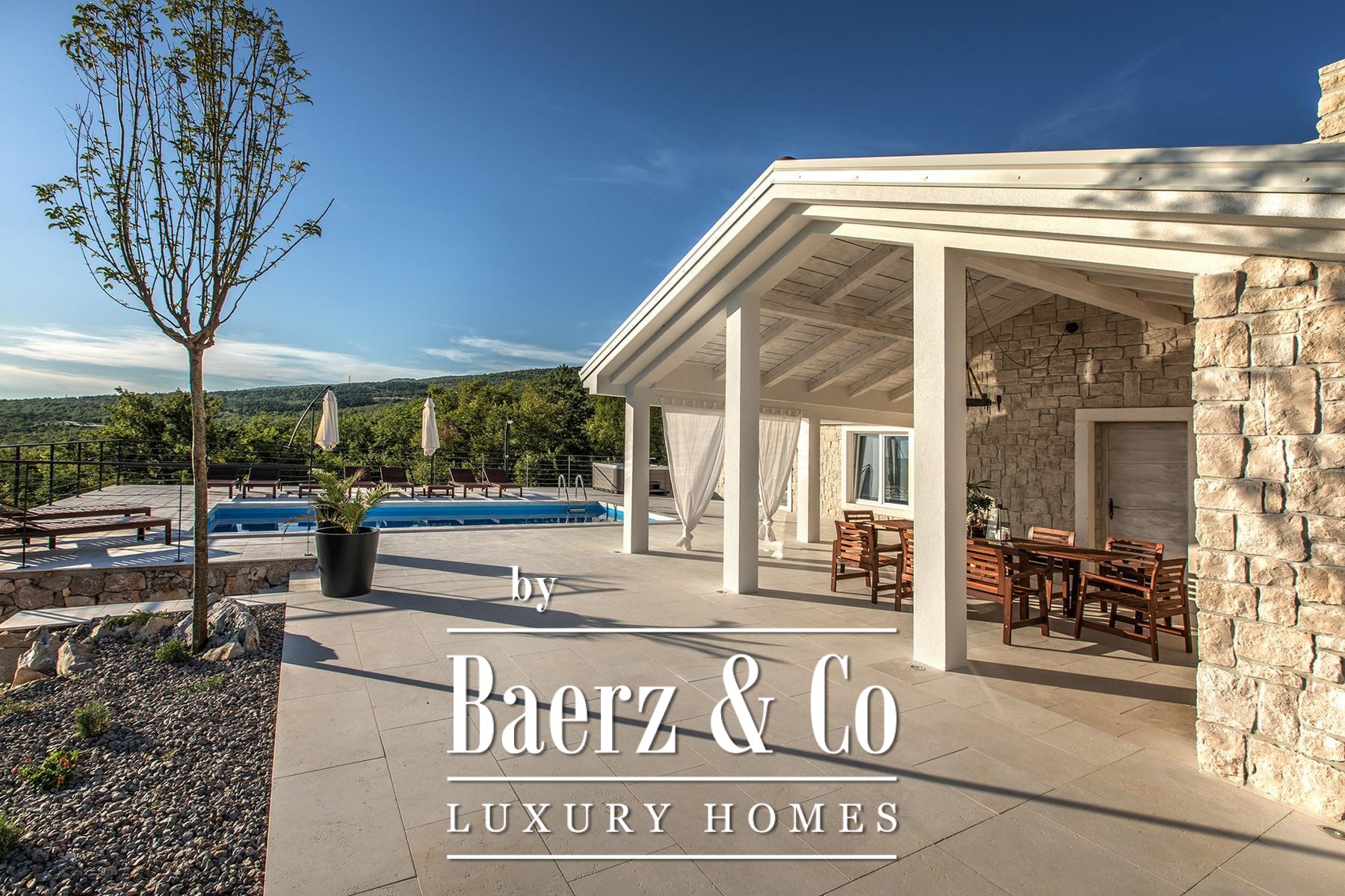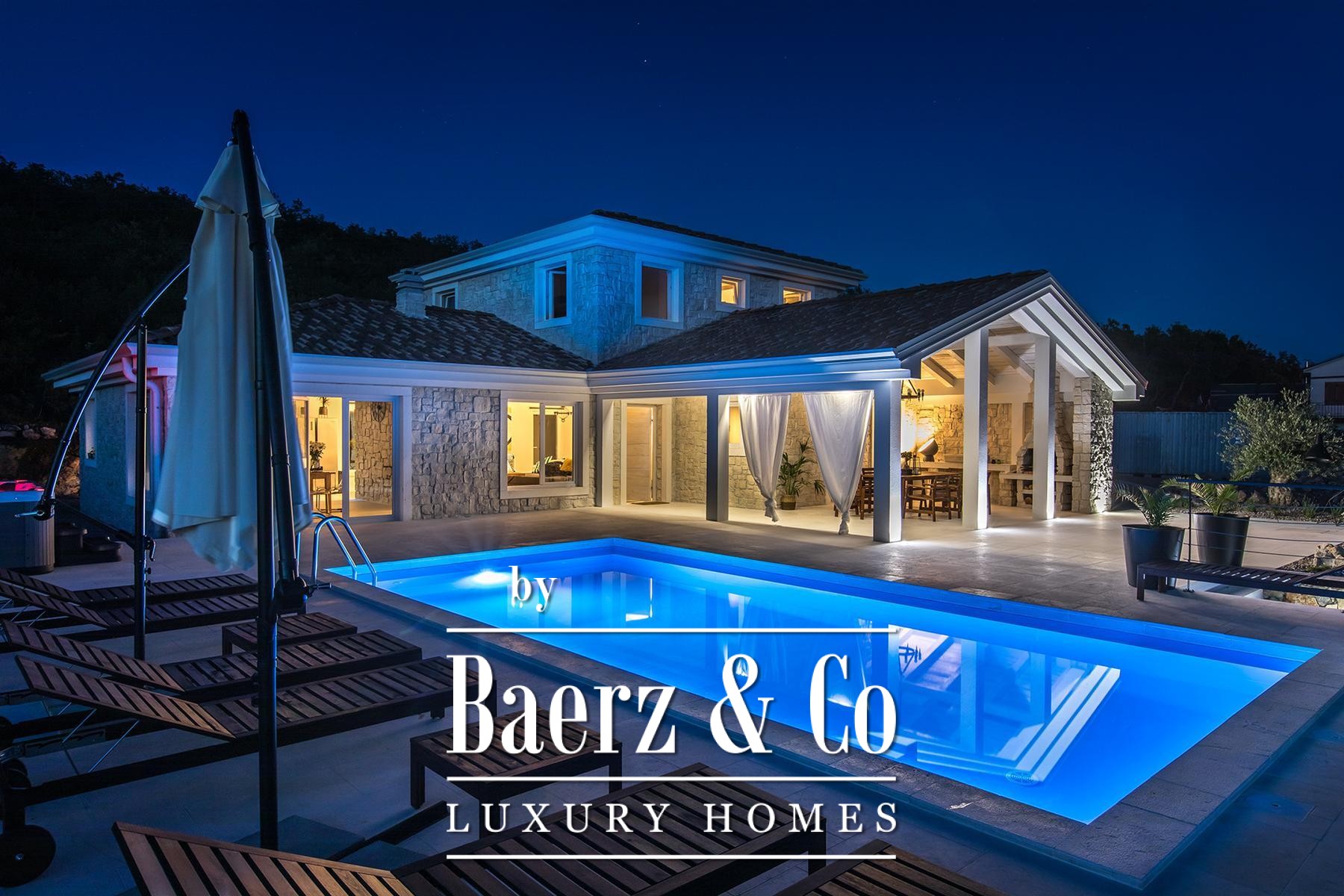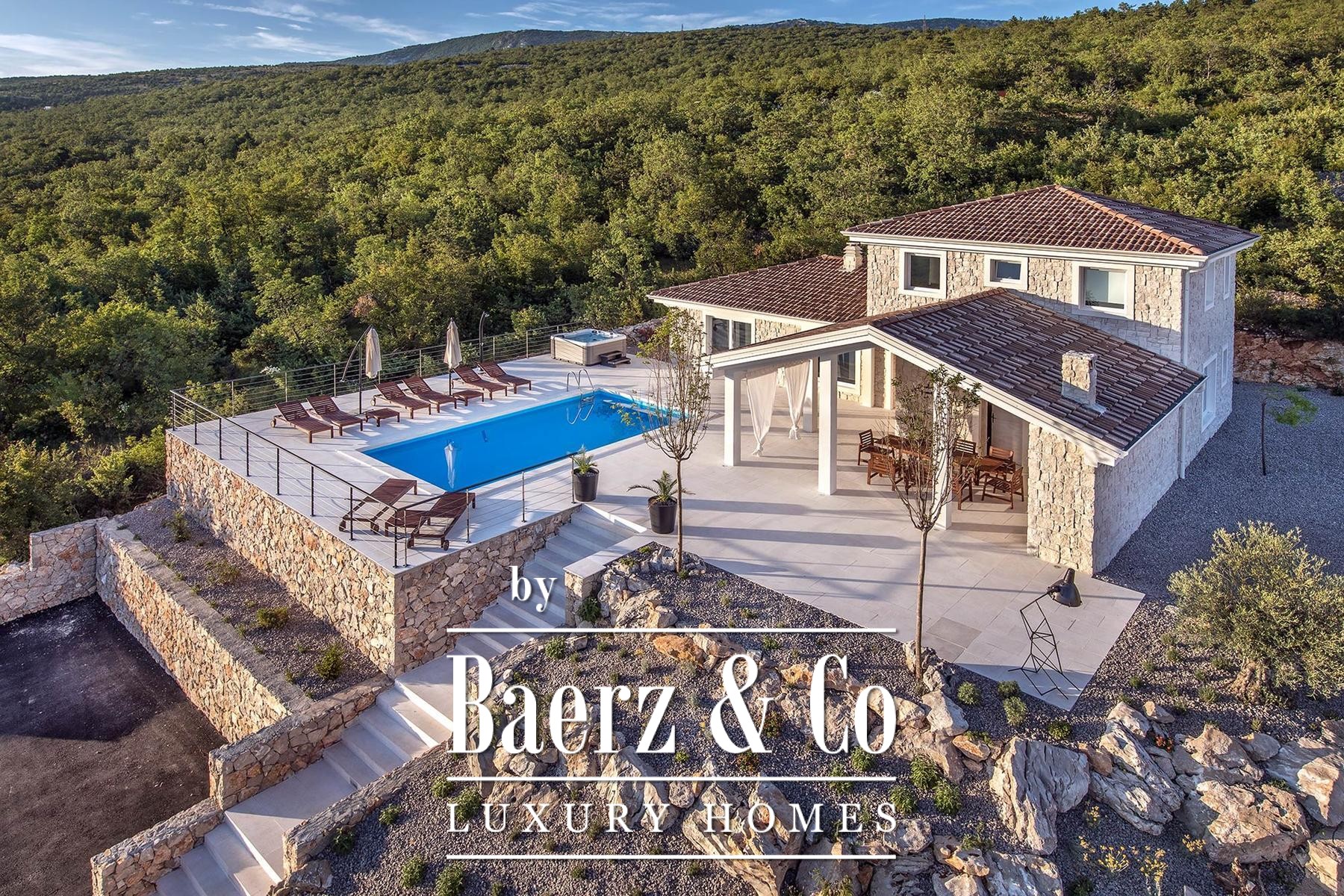 Stone villa Crikvenica is quietly positioned in a greenery-encircled area of Jadranovo, creating an atmosphere of calm and complete privacy. Built from authentic Istrian Kanfanar stone, the villa offers a living area of 185 m², crafted to harmonise comfort, seclusion and enduring quality.