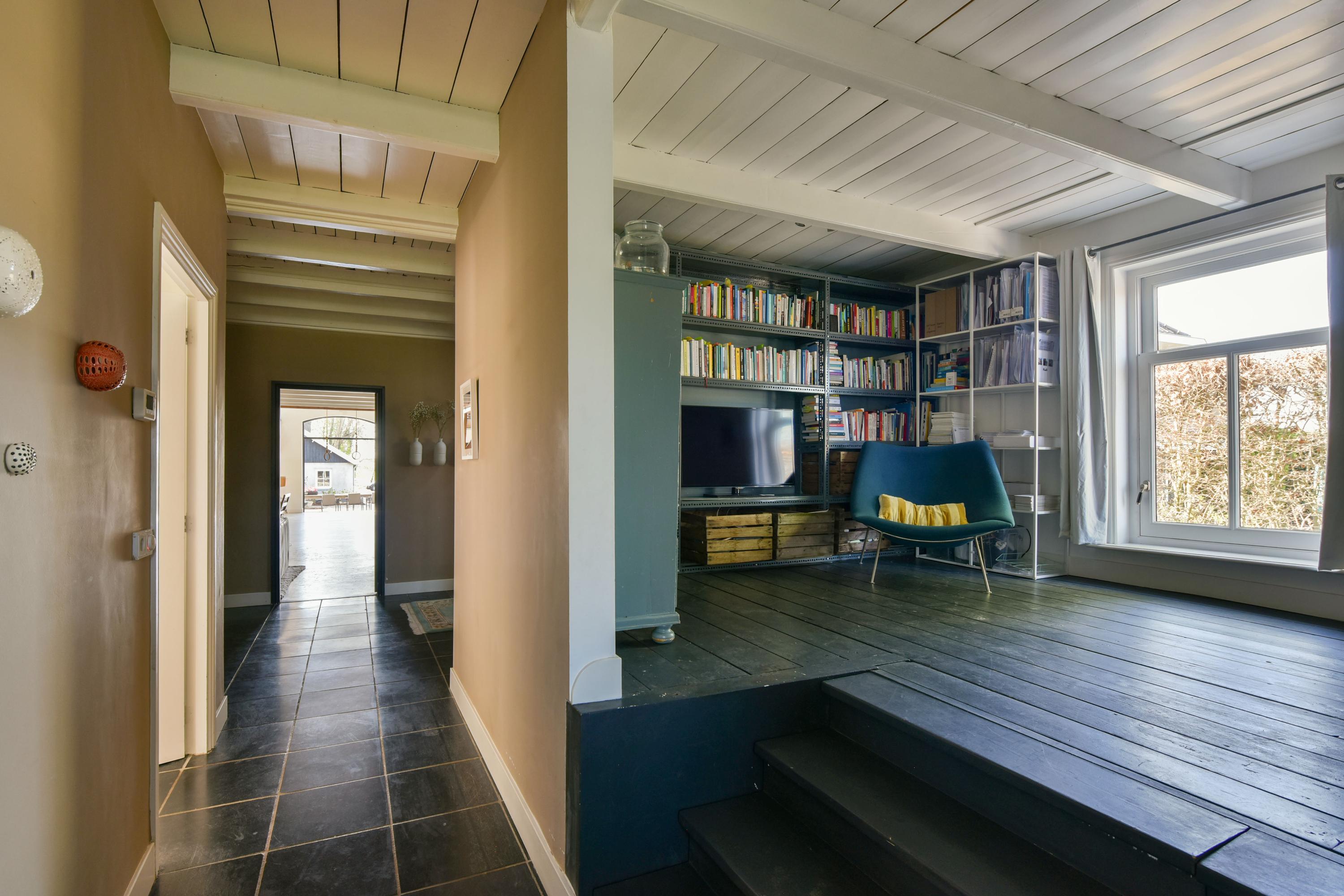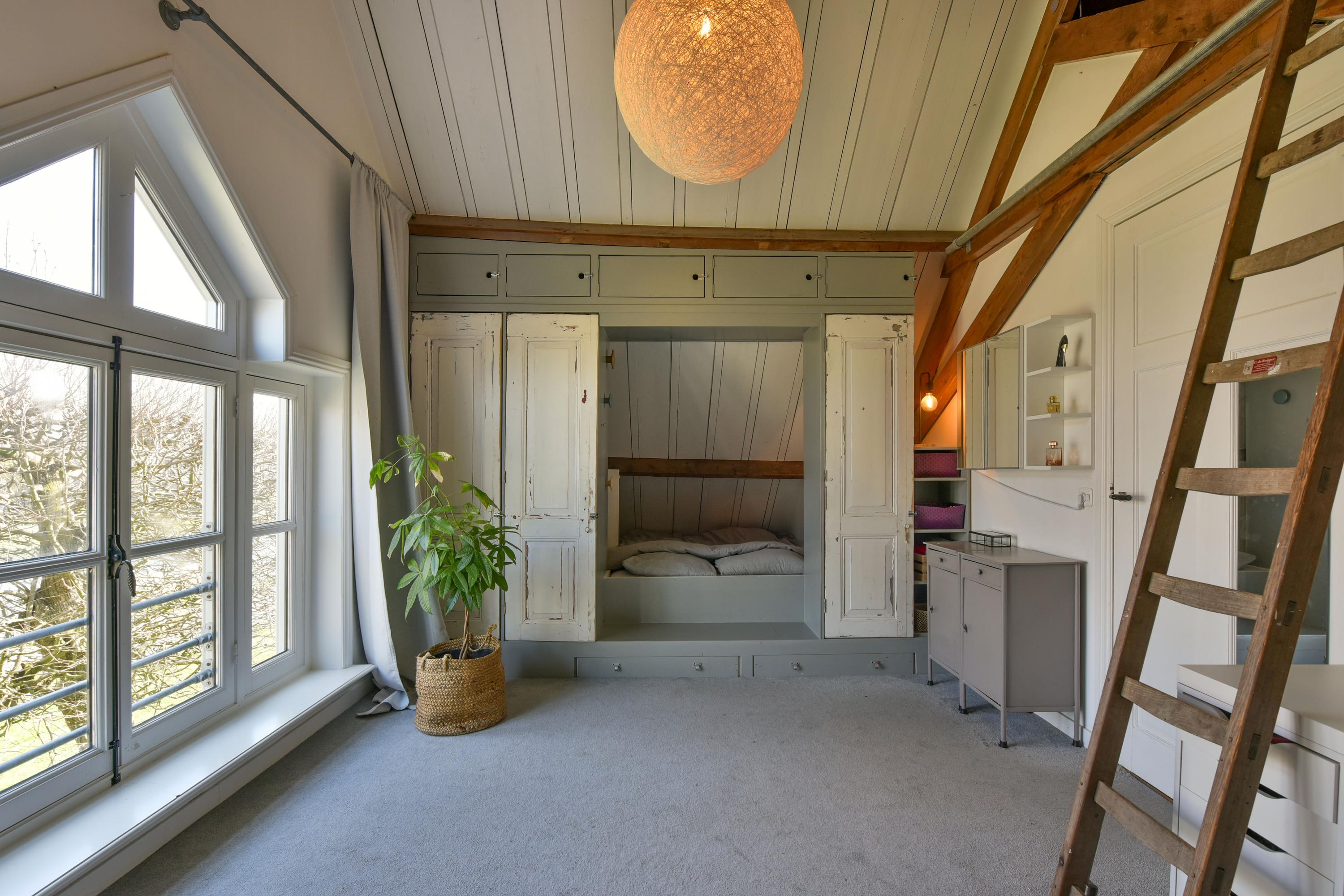 The raised room (“opkamer”) is reached via a staircase, under which you'll find the original cheese cellar. A clever bit of craftsmanship: part of the staircase lifts to reveal the cellar, where original wooden cheese trays remain – silent witnesses to the home’s artisanal past. The room above exudes atmosphere and history, making it perfect as a cozy TV room, home office, or playroom.