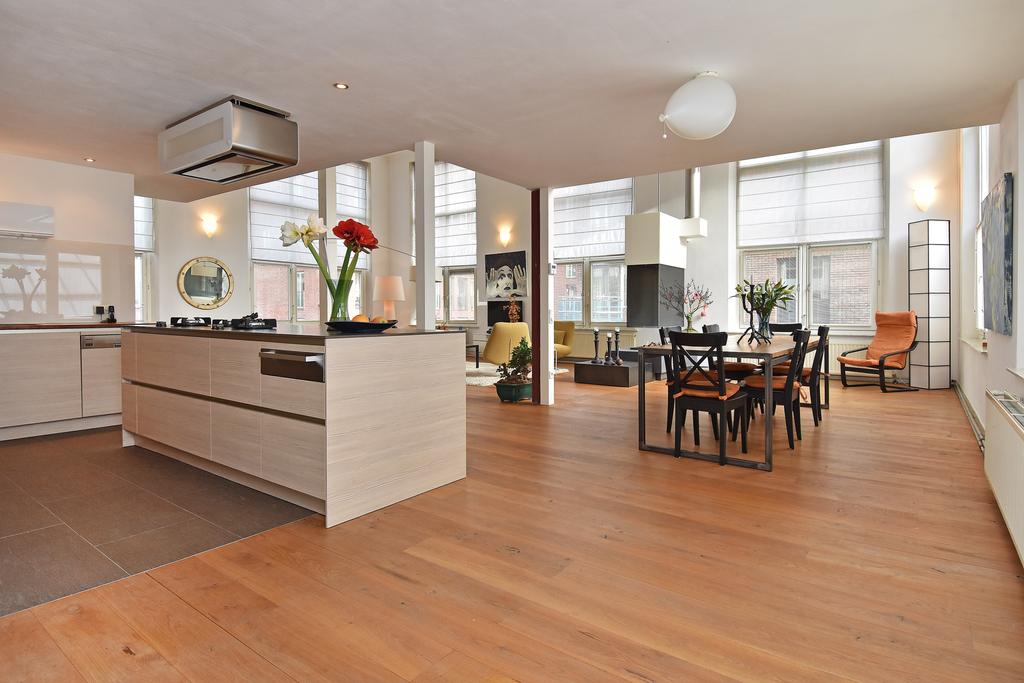 Het appartement heeft vier ruime slaapkamers, twee badkamers, een bijzonder licht woongedeelte met een unieke plafondhoogte en een luxe open keuken. De goed bruikbare vide op de verdieping maakt het geheel uniek en bijzonder.