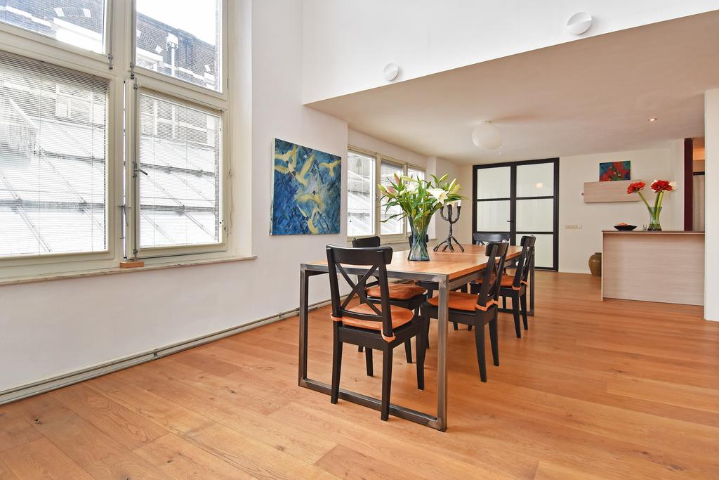 Het appartement is gelegen op de eerste verdieping en heeft twee woonlagen in een monumentaal complex dat is voorzien van een lift. Het appartement combineert de sfeer van een loft met de ruimte van een herenhuis.