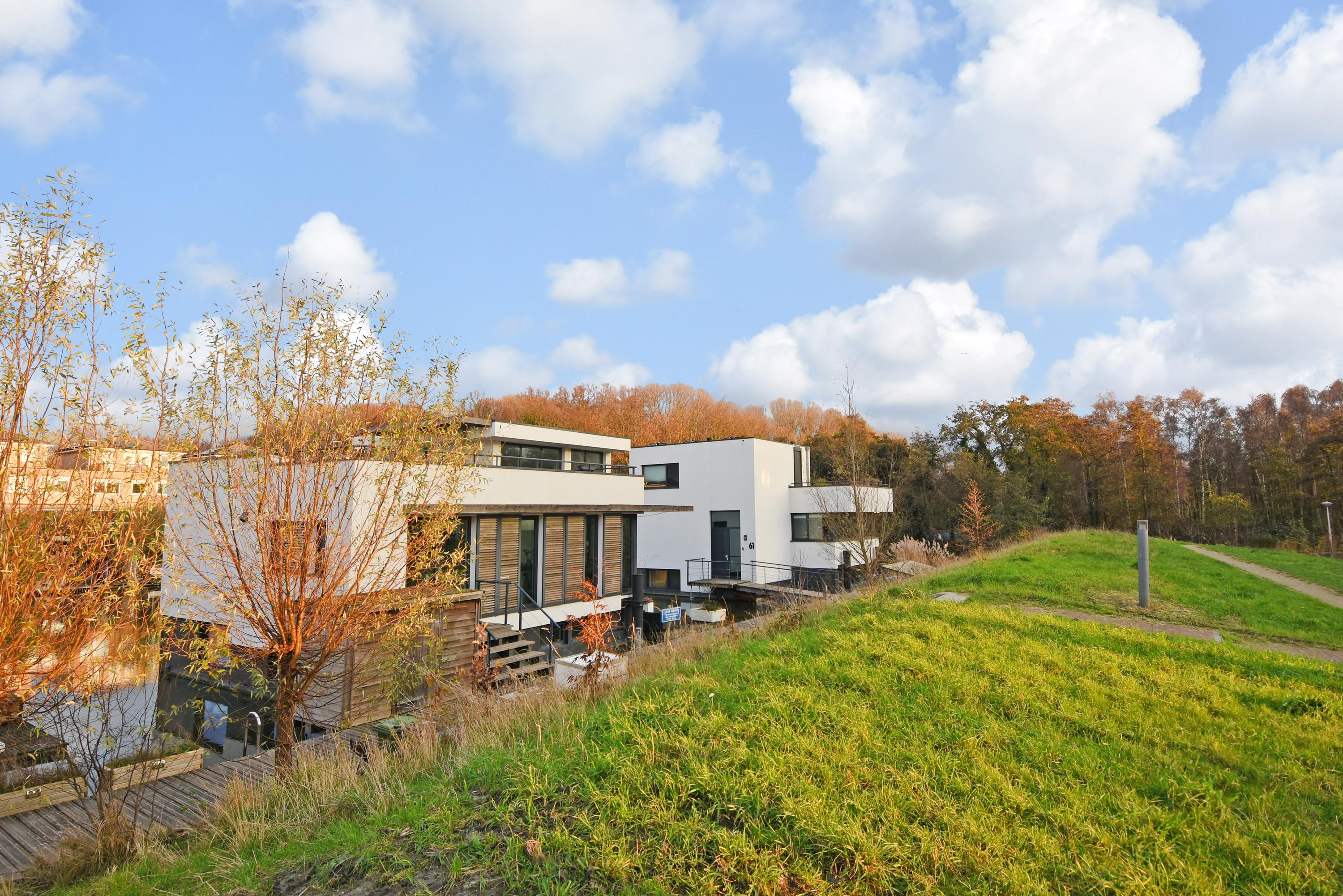 This charming, spacious and energy-efficient floating home is situated in a special location on the water, surrounded by peace and greenery. The property has a luxurious appearance, is well maintained and very practically laid out.