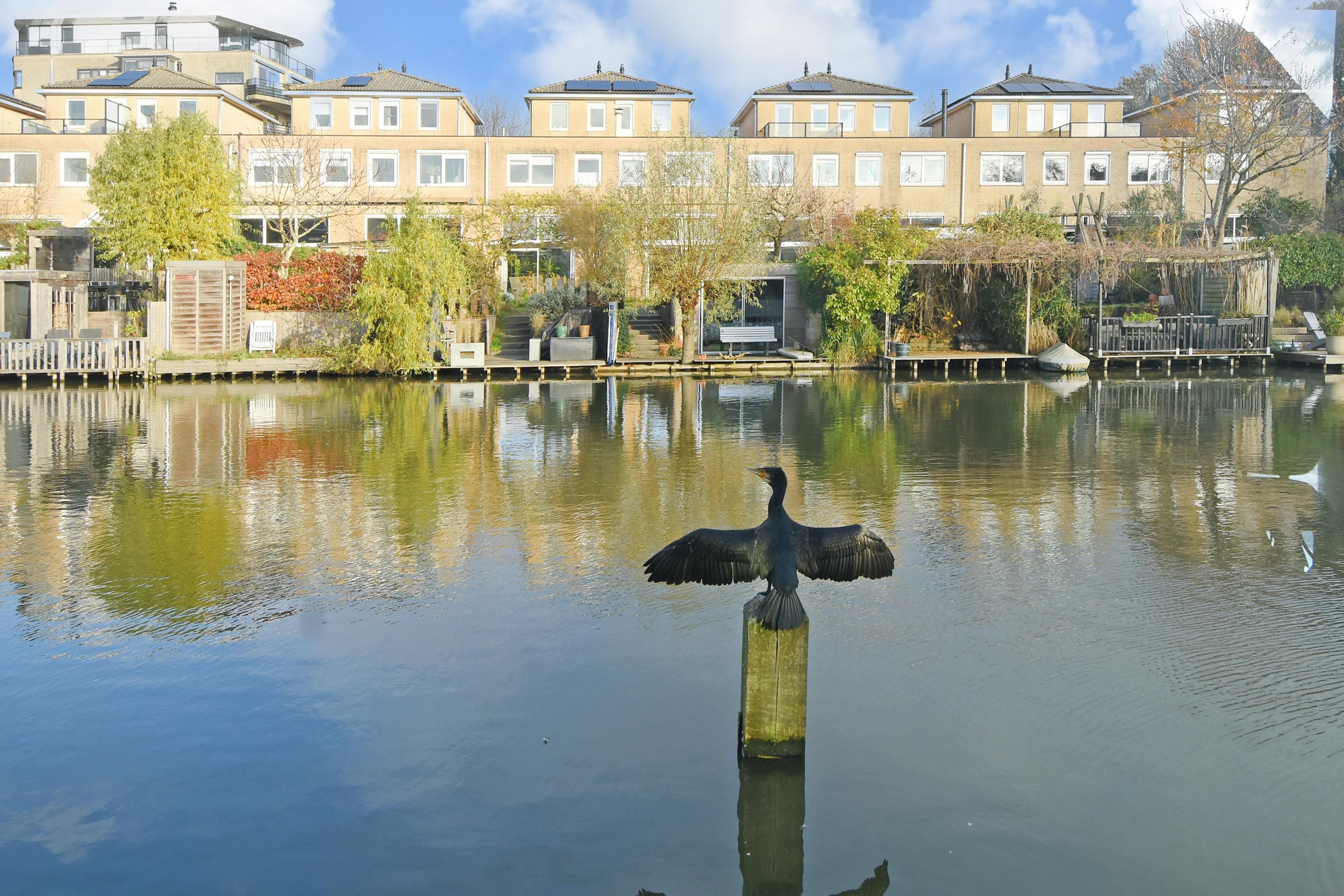 The villa is positioned freely along a shared (communal) jetty next to a small “dike”. This ecological zone with natural vegetation provides plenty of privacy. The home overlooks the water and the beautiful Hof van Delft Park, a lovely place to relax and enjoy nature. The neighbourhood is wonderfully quiet and spacious, with lots of water and greenery—offering a true sense of space and freedom.