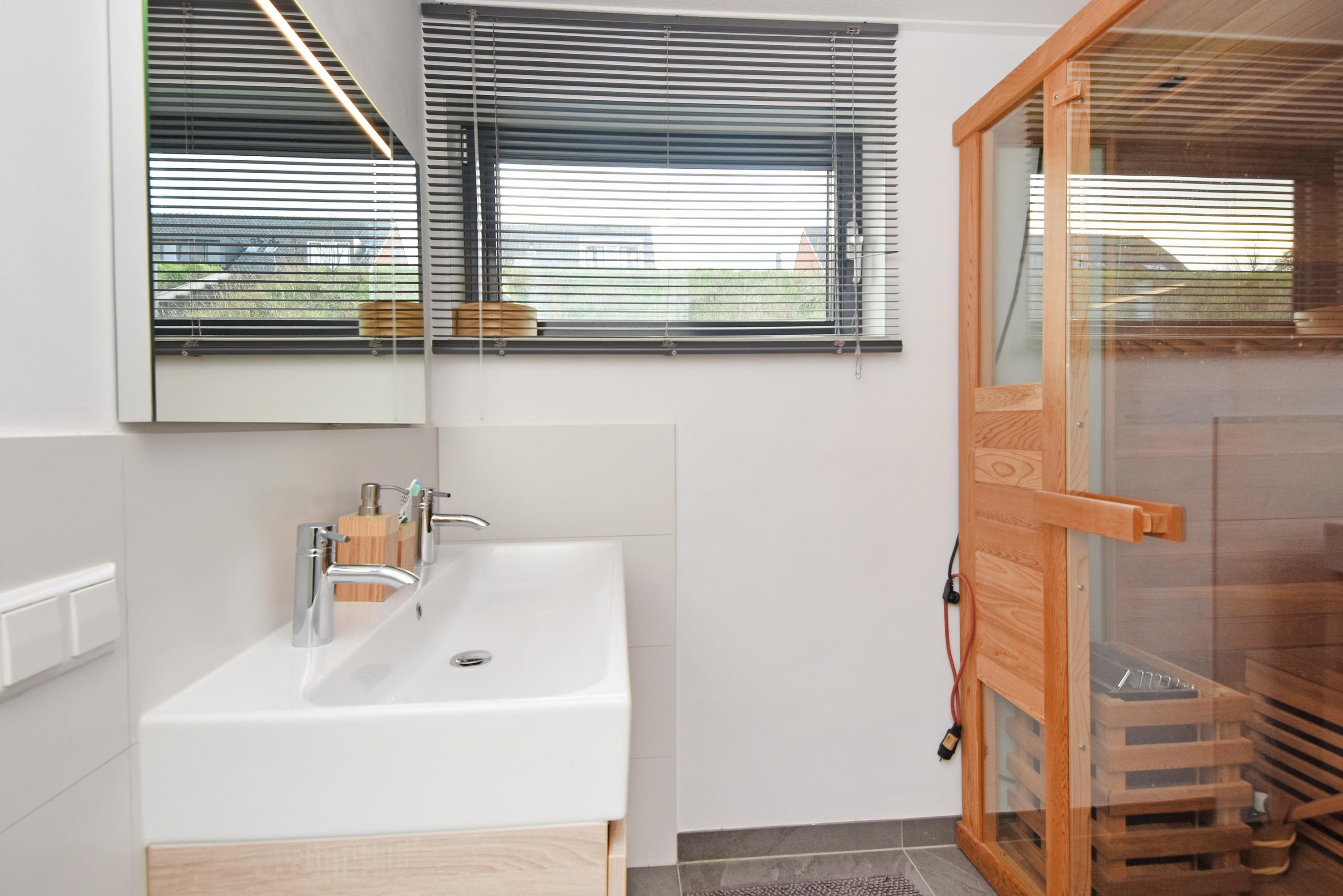 On the lower level of this home, even more luxury, space and amenities await. Here you will find a generous study/atelier, a second toilet with washbasin and a luxurious second bathroom with walk-in shower, double washbasin with cabinet and a sauna. In addition, there are three spacious bedrooms, one of which features a large built-in wardrobe. From this room, you access an exceptionally large storage area, offering ample room for storing belongings.