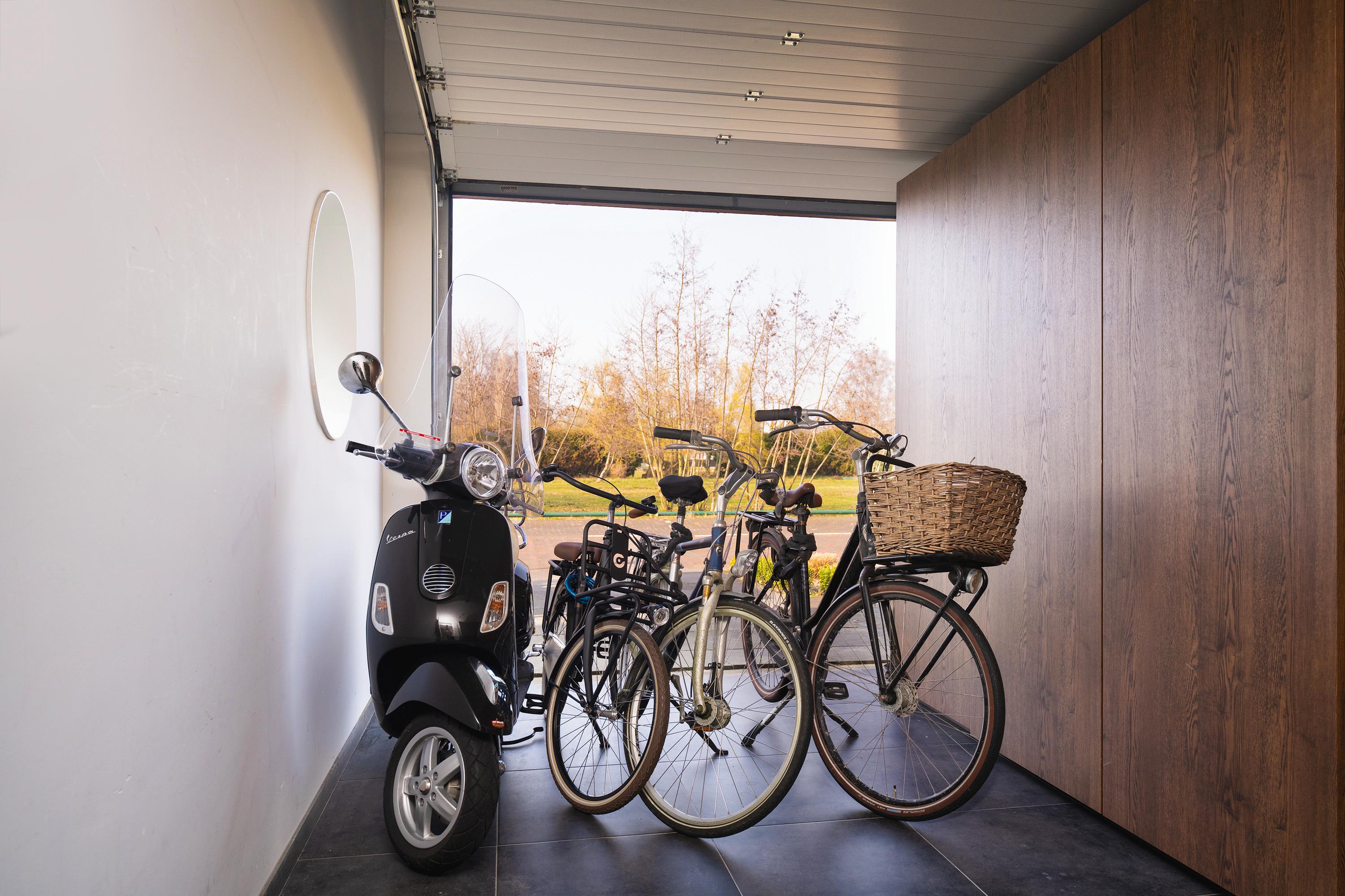 Adjacent is an indoor practical garage/utility room with additional storage space, ideal for storage or hobby use.