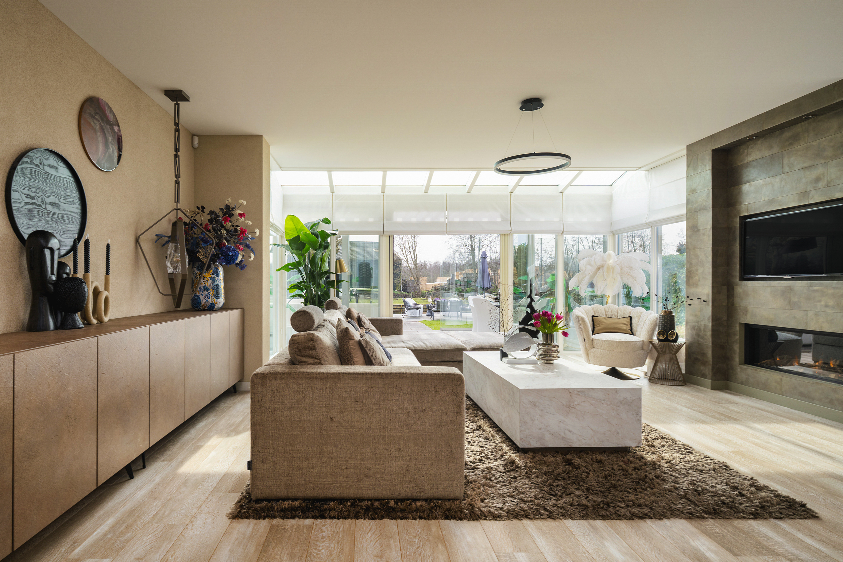The garden is beautifully landscaped and thoughtfully designed. Located on the water with a private mooring for a sloop and a swimming ladder to enjoy the open water directly. Whether you are lying in the hammock or sitting on the terrace by the water, the view of the water and Het Twiske never gets boring. The garden has drip irrigation for optimal watering and atmospheric lighting with 12V spots. Under the canopy with louvered tilting roof and glass sliding doors (with integrated drainage function), you can enjoy it all year round.