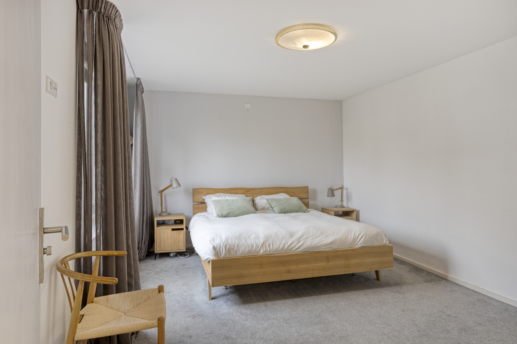 Eerste verdieping: bordes met toegang tot de vide die nu wordt gebruikt als atelier, de berging en de twee hele ruime kamers (30 m²). De berging is voorzien van een wastafel en daar zit tevens de CV-ketel. De ene kamer wordt nu gebruikt als slaapkamer en de ander als extra living. Dit kan uiteraard ook prima gebruikt worden als slaapkamer.