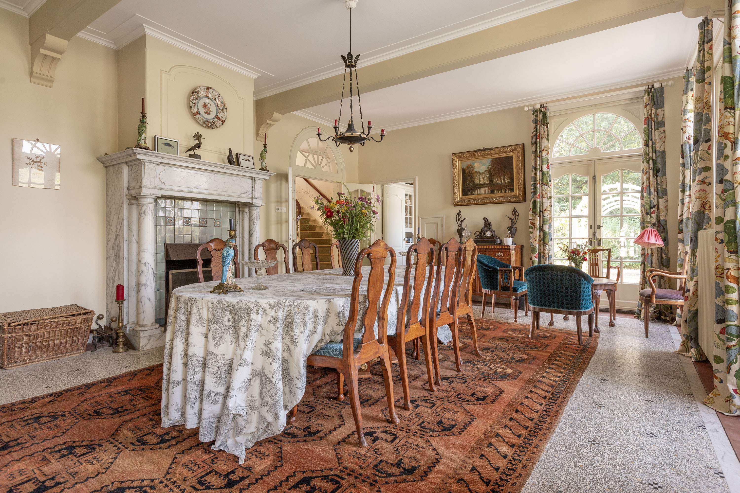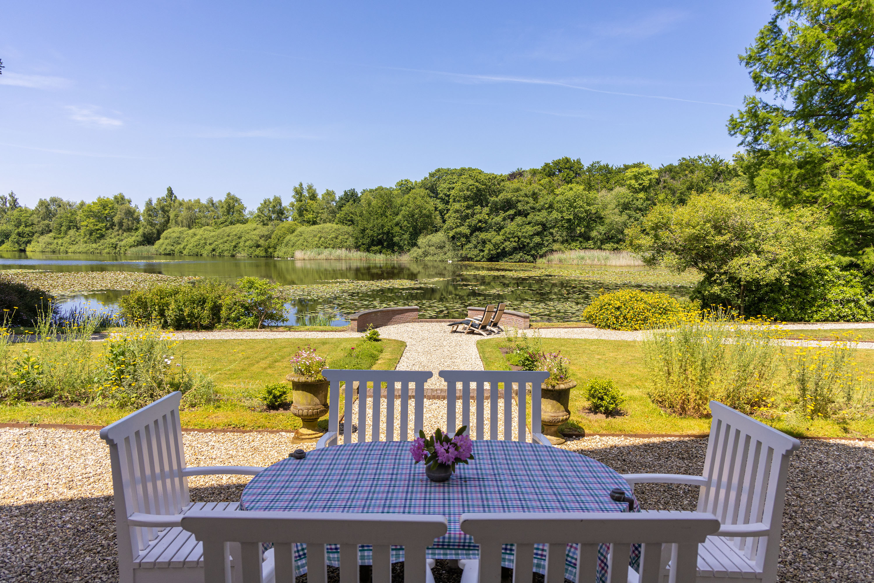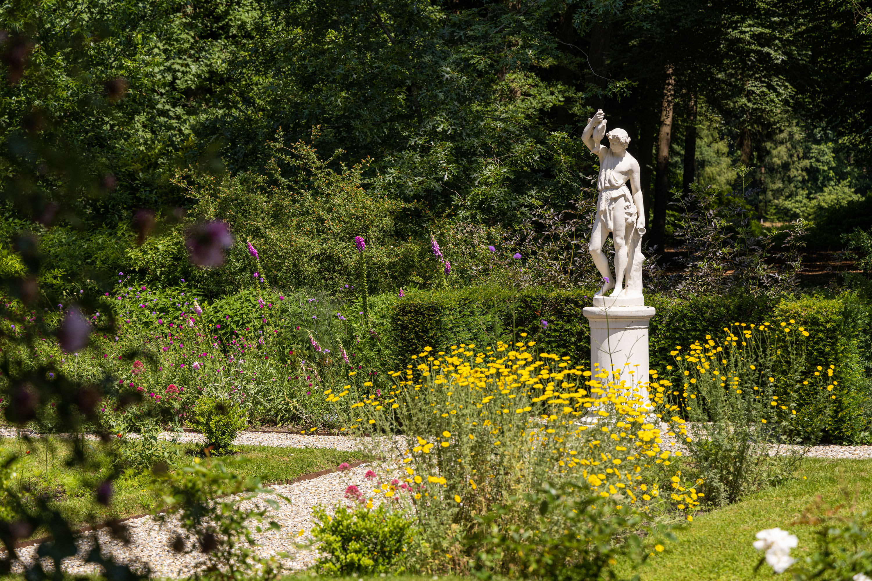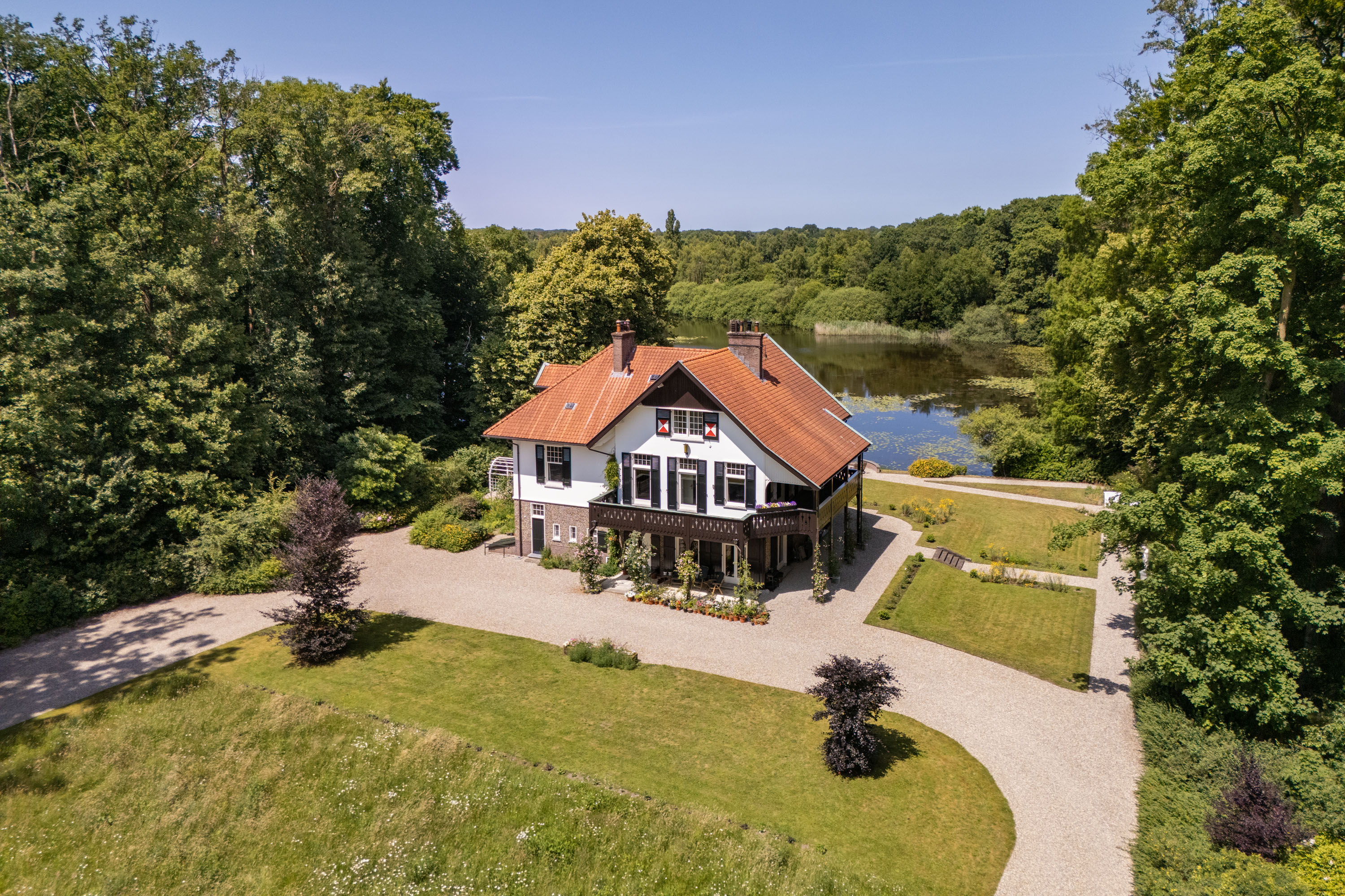 Over the past decade the current owners have made every effort to restore the estate to its former glory. Together with Landschap Overijssel and several renowned partners a restoration plan was carried out for both the garden and the park. Everything was done in line with the intentions of landscape architect L.A. Springer, who designed the estate in the early 1900’s. The two main sightlines from the house to the lakes have been restored as well as several sightlines on both sides of the house, including the so-called maid's lane leading to the nearby farmhouse. The restoration and (re)design of the rose garden, borders, lawns with garden ornaments, ornamental forest edges, decorative shrubbery, park layout with old trees, orchard, and wildflower meadow with historical ornamental plants were completed, complementing the garden and park. It is almost inconceivable how many plants and shrubs have been planted in recent years.