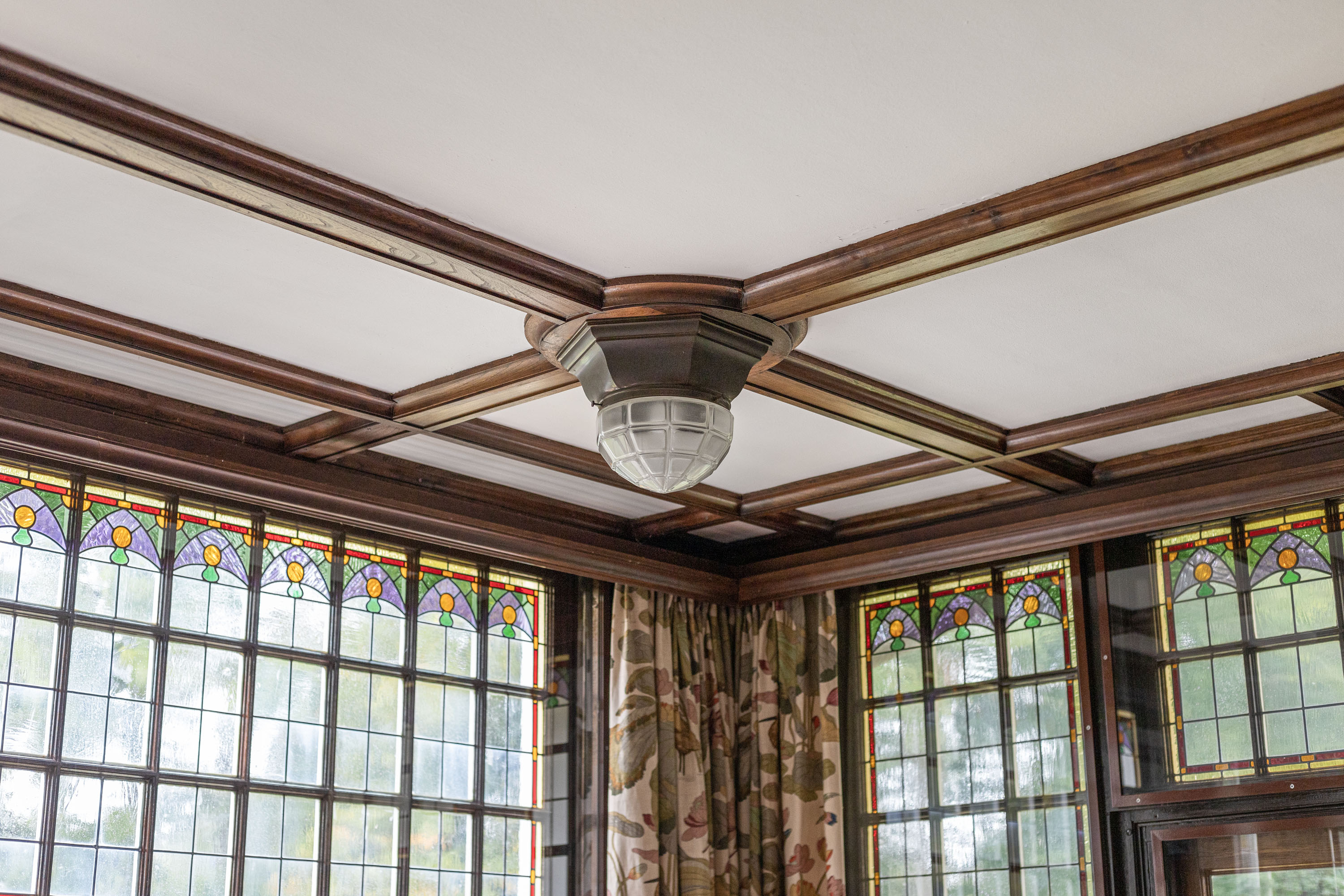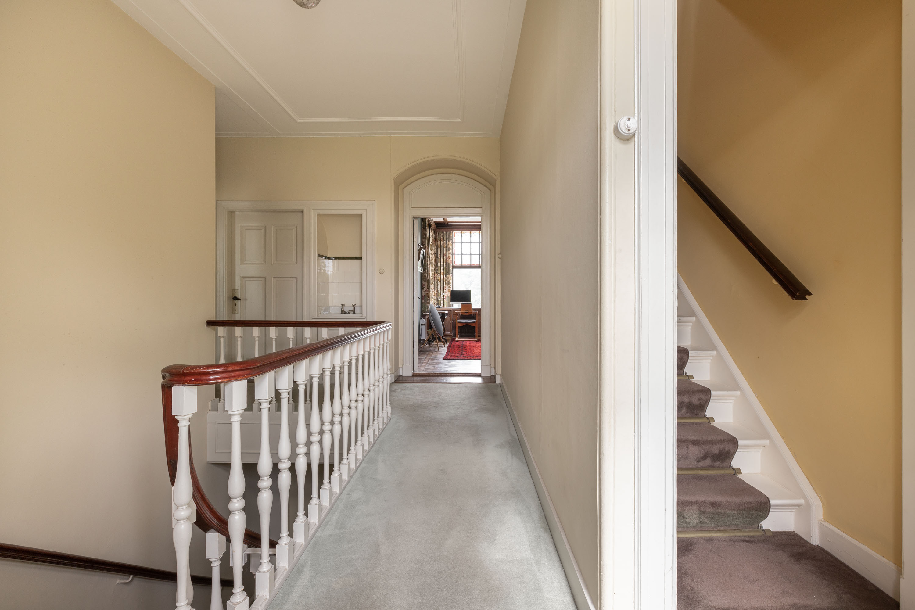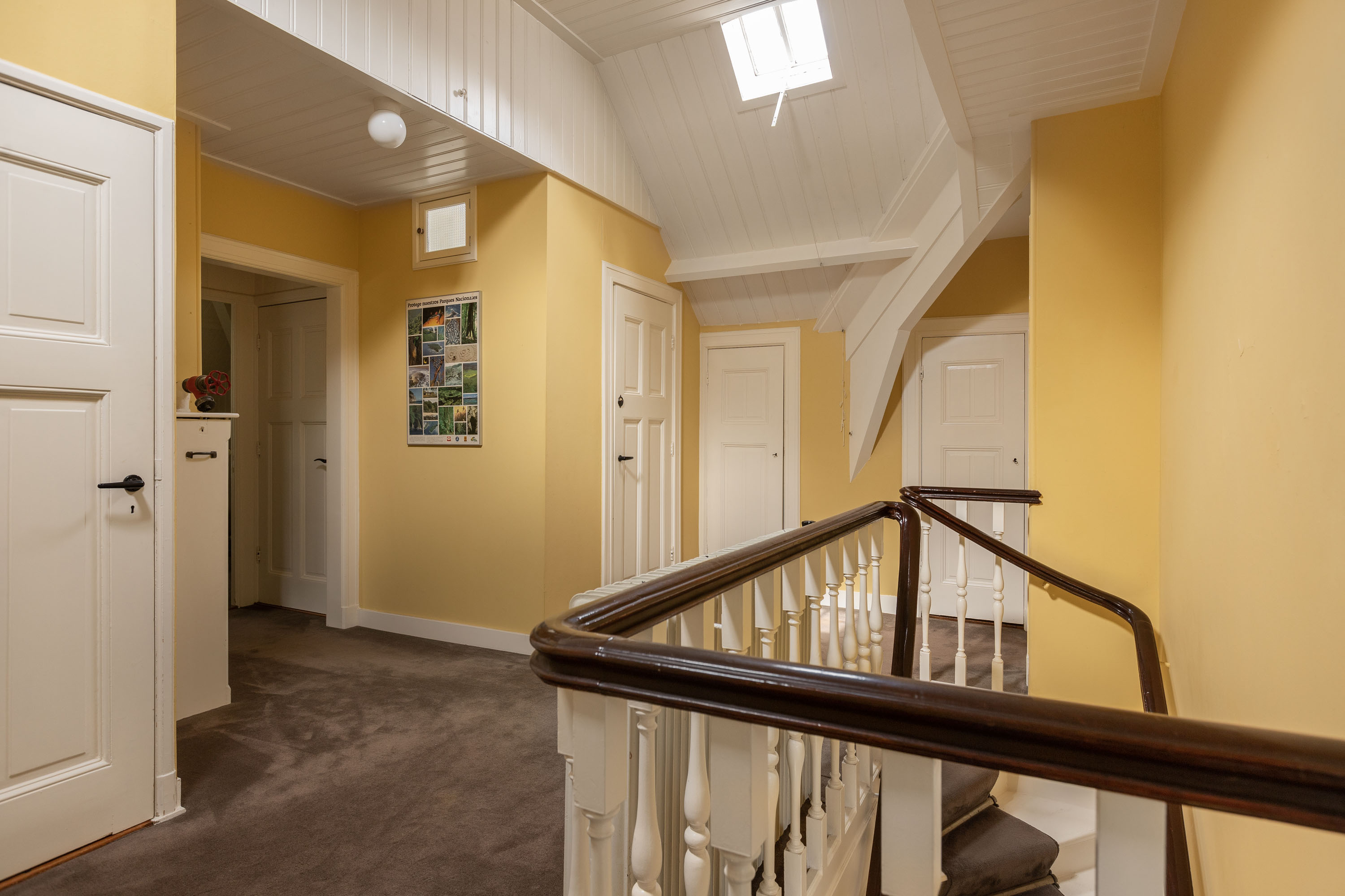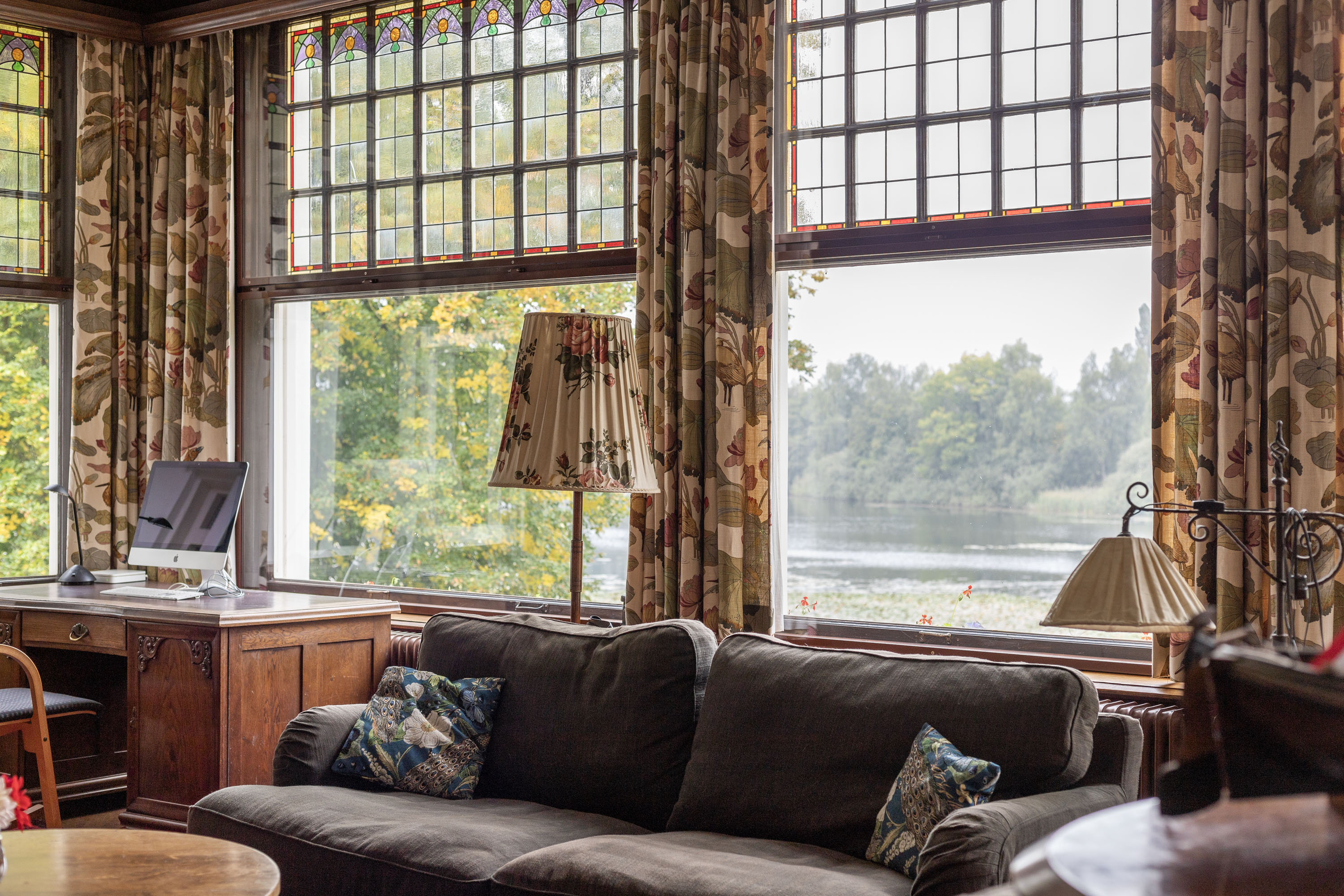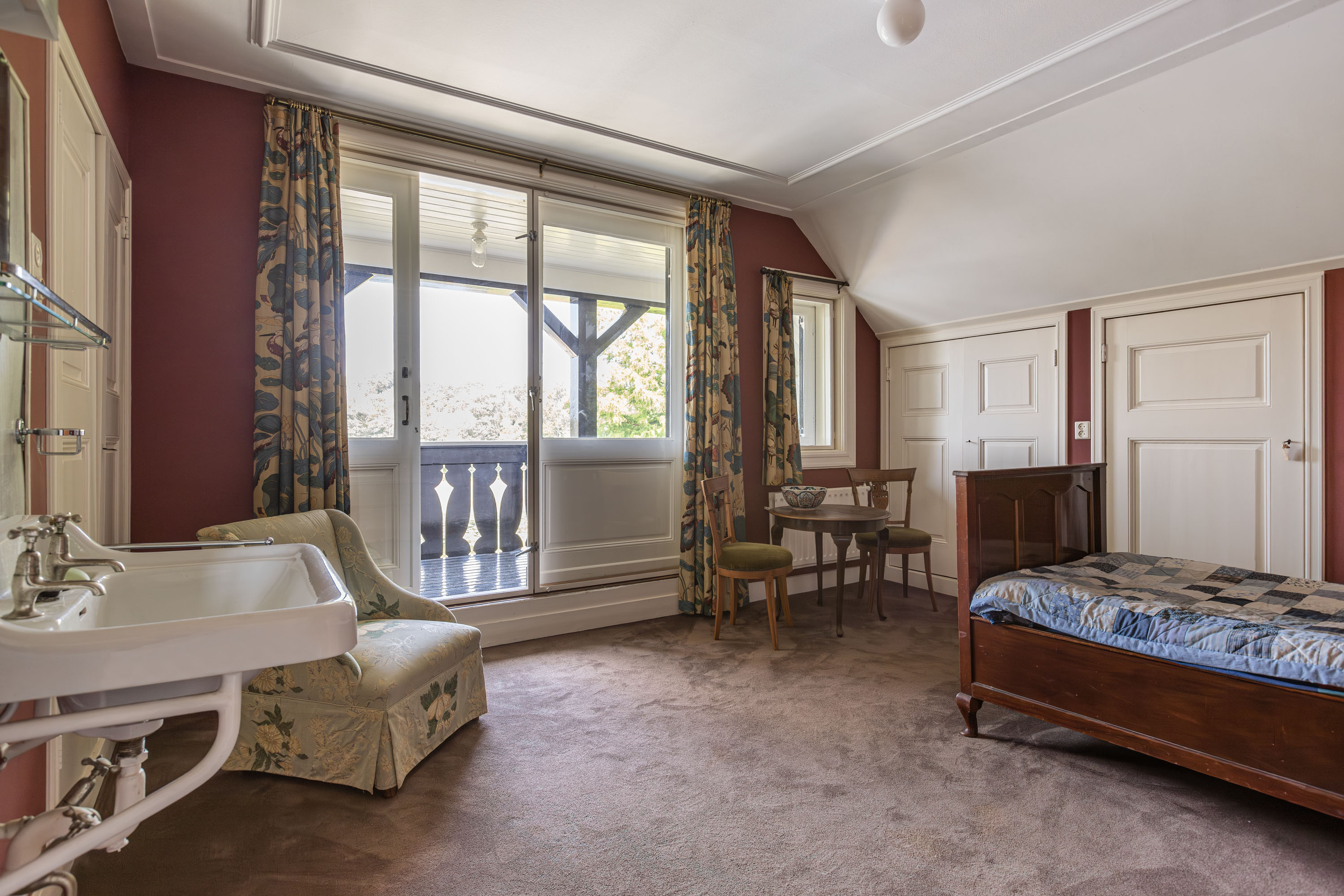 This villa, built in 1901 and designed by architect Karel J. Muller in chalet style, is a national monument. Architect Muller is known for projects such as the Rijksmuseum in Enschede, Tuindorp 't Lansink in Hengelo and several prestigious country houses in Twente. The villa was originally commissioned by Otto Stork, a member of a well-known industrial family. After nearly a century of family ownership the Overijssels Landschap Foundation purchased the Lonnekermeer estate in the early 2000’s including this villa, which was later sold to the current residents with the land leased on a hereditary basis. At the time the house was in a poor state of repair and was subsequently restored to its former glory, preserving its original character and many authentic details. Features such as the terrazzo floors and the original parquet flooring remain intact. The numerous built-in cabinets and service cabinets in the kitchen and pantry are still present. The three fireplaces, two bathrooms and five toilets, most of them with unique facilitary facilities, are also still part of the property. Some original light fixtures have been preserved, as well as the apple drying cabinets in the basement. The many windows provide a very pleasant natural light and offer phenomenal views on all sides. Nearly all transom windows contain stained glass. Despite its age and the focus on preserving details, the villa offers modern comfort. The entire villa has secondary glazing, cavity walls and an insulated roof. In 2023 a pellet stove system, a wood stove and a heat pump boiler were installed. Thanks to careful and systematic annual maintenance supervised by the Monumentenwacht, the house is currently in excellent condition. A structural report is available.