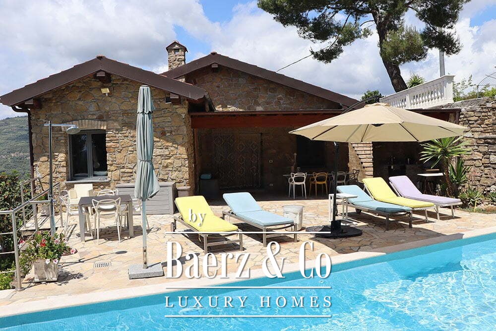 Access is through a private road with a remote-controlled gate, ensuring privacy and quiet. There is parking for several cars. The medieval village of Dolceacqua is less than ten minutes away, with the coast and towns such as Ventimiglia, San Remo, and Monte Carlo within easy reach. Direct hiking routes lead from the property into the surrounding hills and picturesque villages, while beaches and cultural events remain close at hand. This luxury villa for sale in Dolceacqua offers peace, provenance, and a distinct sense of place, allowing owners to embrace both seclusion and the richness of Ligurian life.