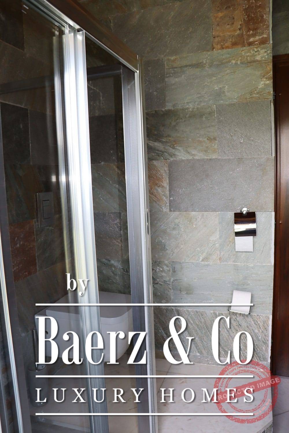 • On the ground floor are 3 bedrooms, each with its own bathroom.
