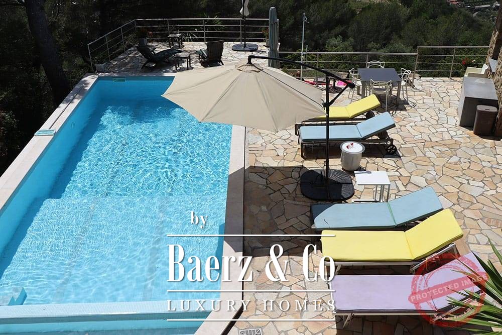 The villa has incredible views over the valley, the beautiful mountain landscapes and the Mediterranean Sea. Next to the large terrace is an 11m by 4m swimming pool.
