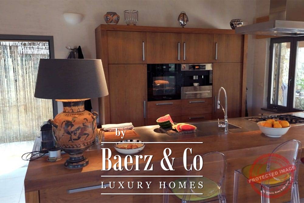 What also makes the villa so special are the many attractive terraces around and above the property, each with its own unique view and beautiful garden furniture such as granite tables and designer chairs. Right next to the French doors by the kitchen is a large pergola through which you can sit and eat outside in all seasons.