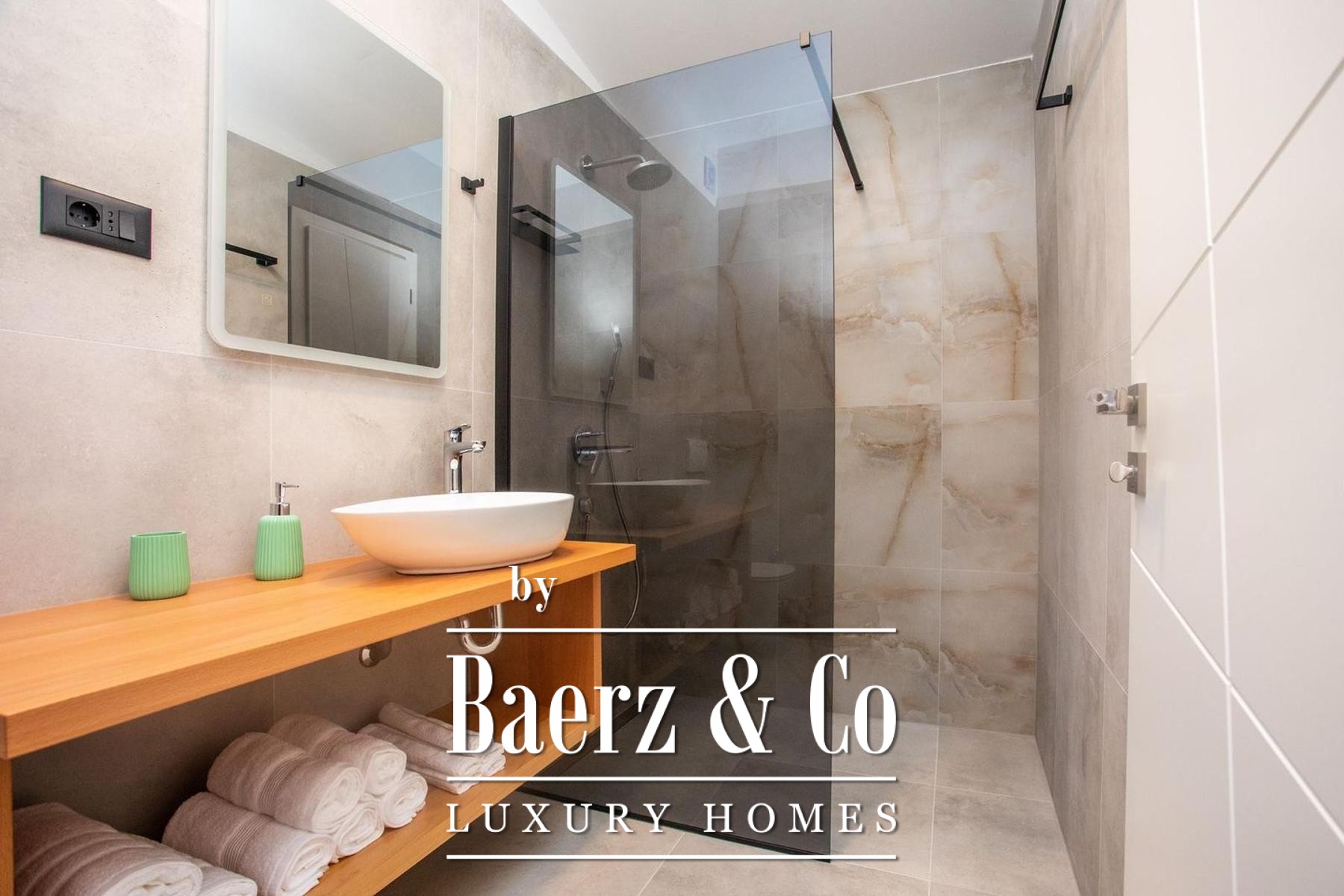 The first floor consists of four spacious bedrooms, each with its own en-suite bathroom and access to one of two loggias - each loggia connecting two