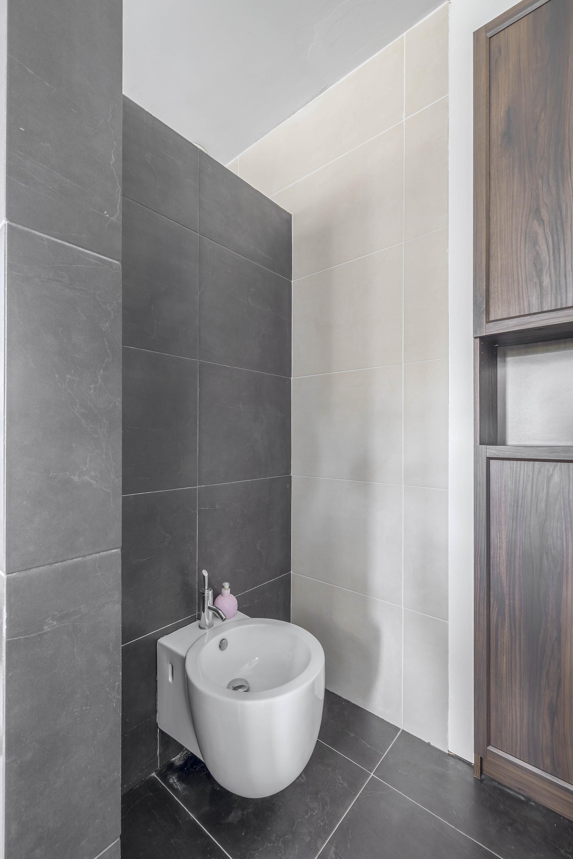 From the driveway on the left side of the house you have access to the studio, located in the practical outbuilding. This independent space features a living room with open kitchen, equipped with an induction hob, extractor hood, refrigerator and a connection for the washing machine. The partially tiled bathroom is equipped with a shower stall, wall closet and a hard stone sink.
