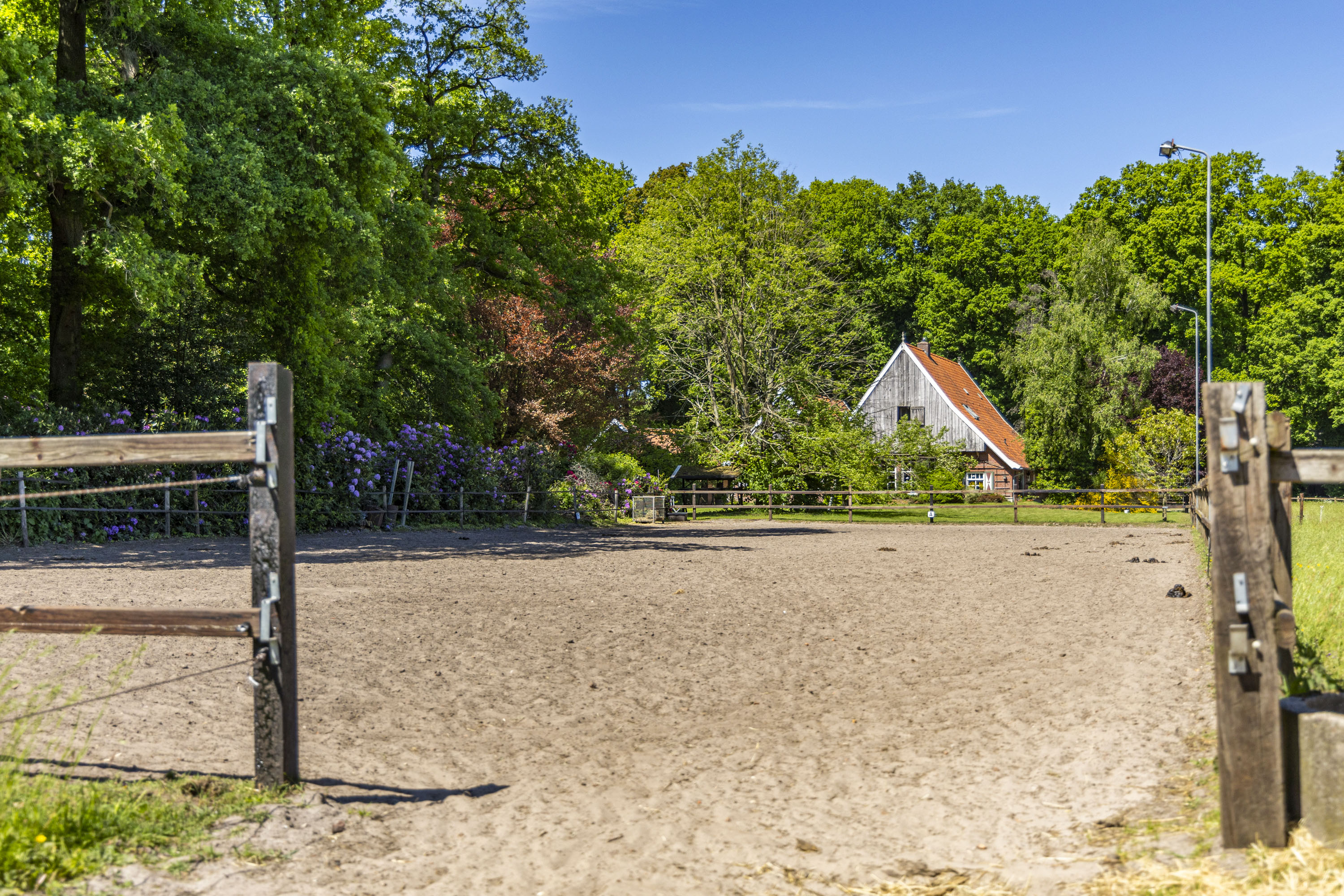 Estate Wienenbleek spans approximately 7.24 hectares, consisting of around 4.5 hectares of meadows, bordered by about 2.4 hectares of forest and hedgerows. The meadows, which include a riding arena, are ideal for horses or other livestock, but can also be left natural to serve as a beautiful transition to the forest.