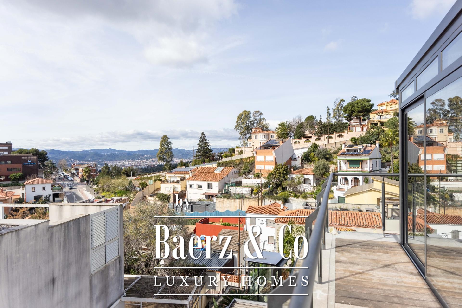 Four landscaped terraces extend the experience outdoors, surrounded by palm and banana trees, curated lawn, a shaded pergola, and a summer kitchen. The 7x5 m swimming pool and wooden sun deck invite moments of relaxation and privacy. The master suite is defined by its walk-in wardrobe, private terrace, and hydromassage bath, while two further bedrooms access a secluded outdoor retreat. An elevator connects the levels, providing comfort and effortless movement throughout the home. The villa’s refined setting in Esplugues de Llobregat ensures both discretion and immediate access to the heart of Barcelona.