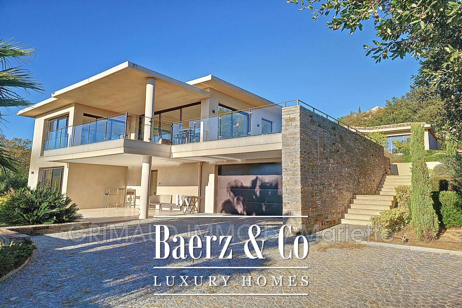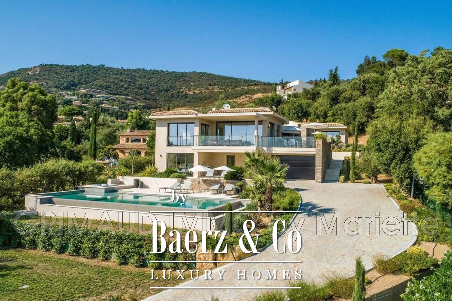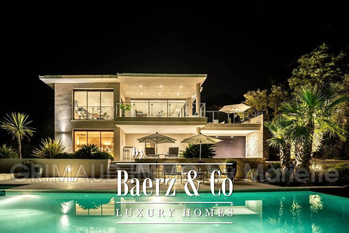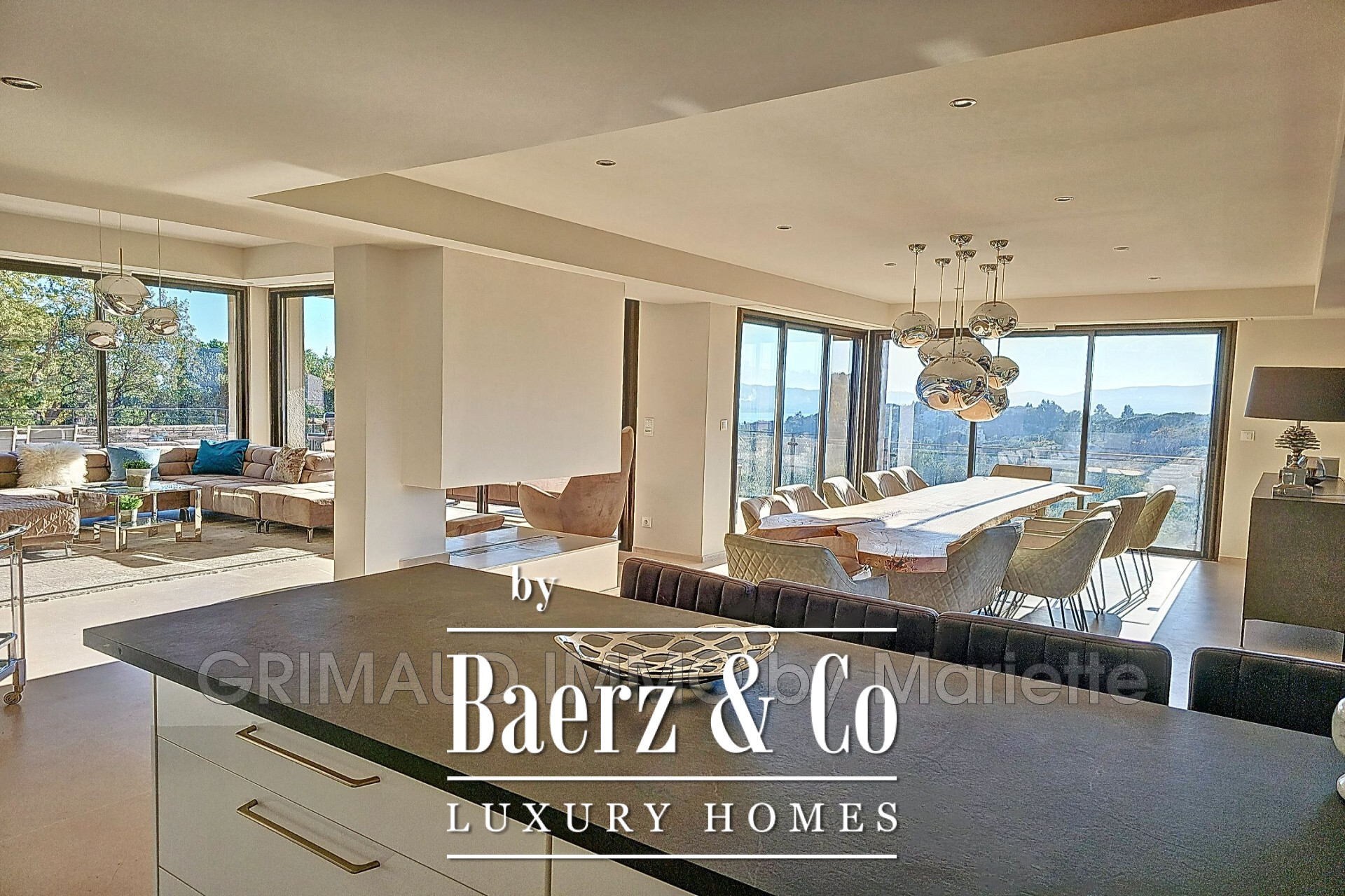 Beautiful detached villa for sale, located in one of the most sought-after neighborhoods of Grimaud.This property offers a generous living area of approximately 300m², thoughtfully spread over two levels, with five comfortable bedrooms, five bathrooms/showers, a separate laundry room, and three parking spaces.Enjoy a fully equipped kitchen and a spacious living room of