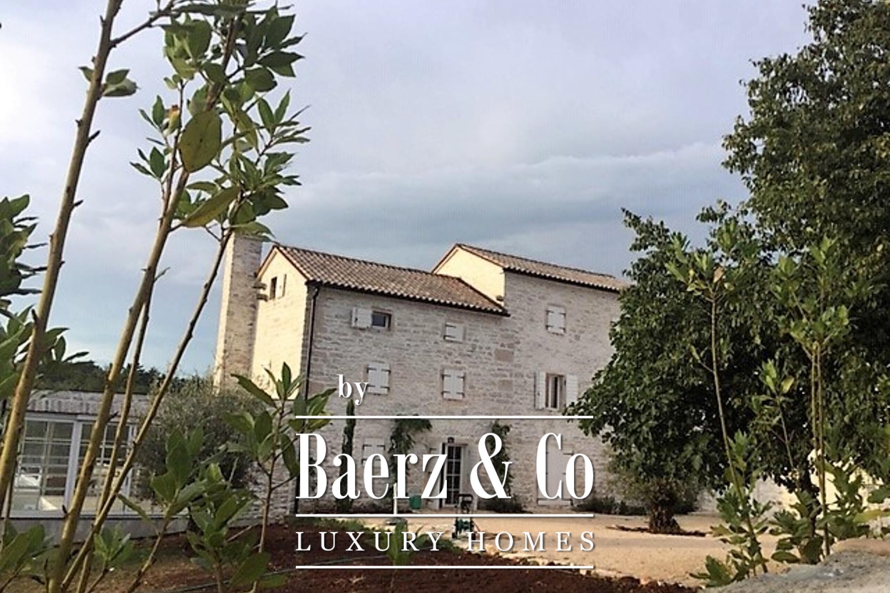 Luxury villa Grožnjan is a rare estate in the heart of inland Istria, blending authentic heritage with refined contemporary living. Spanning 13,497 m² of peaceful land, this property features 517 m² of living space arranged across three distinct structures: a main stone house, an intimate lounge house, and a new architect-designed building. The original stone buildings have been meticulously restored, preserving more than 250 years of Istrian tradition and architectural character.