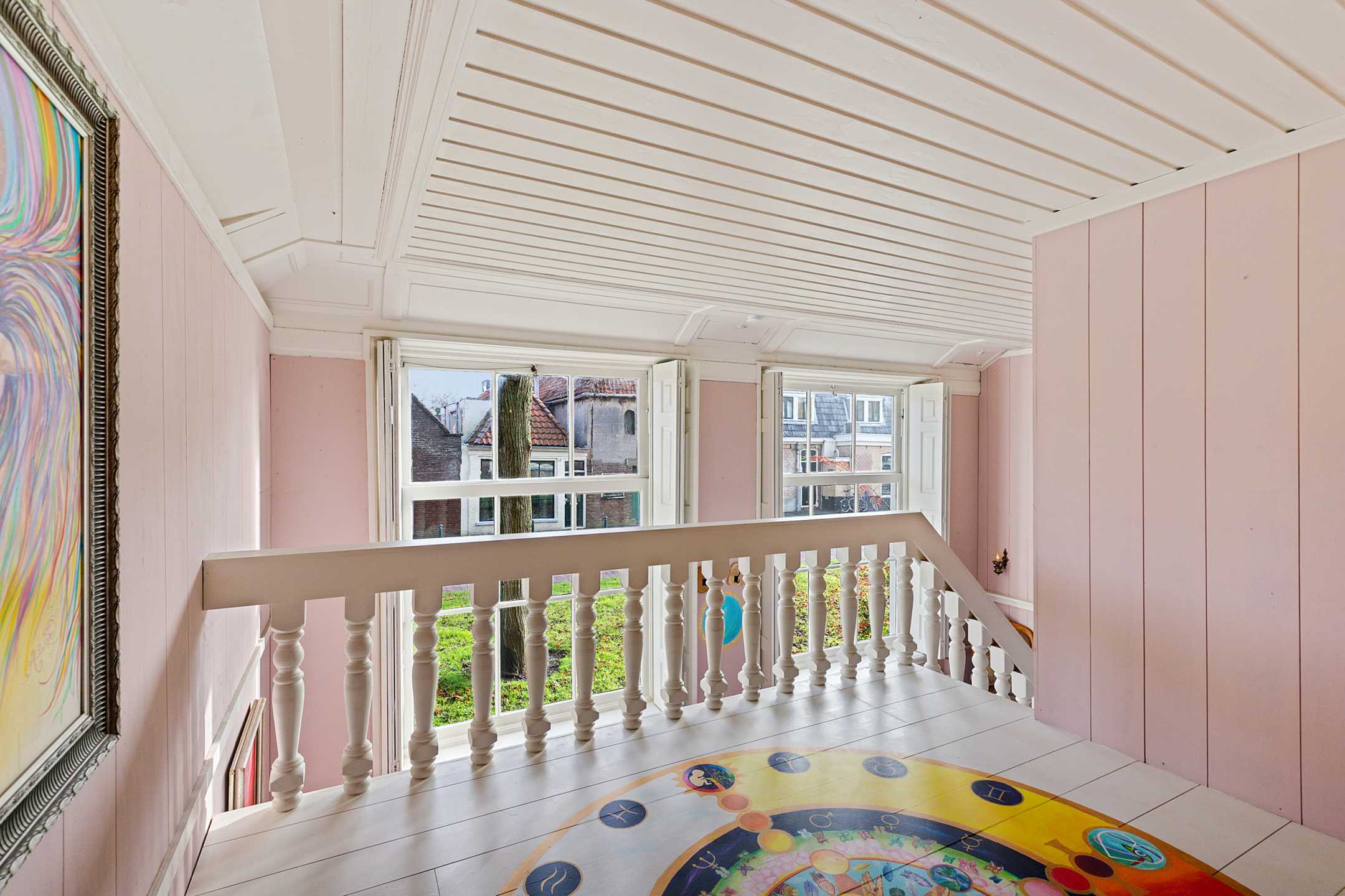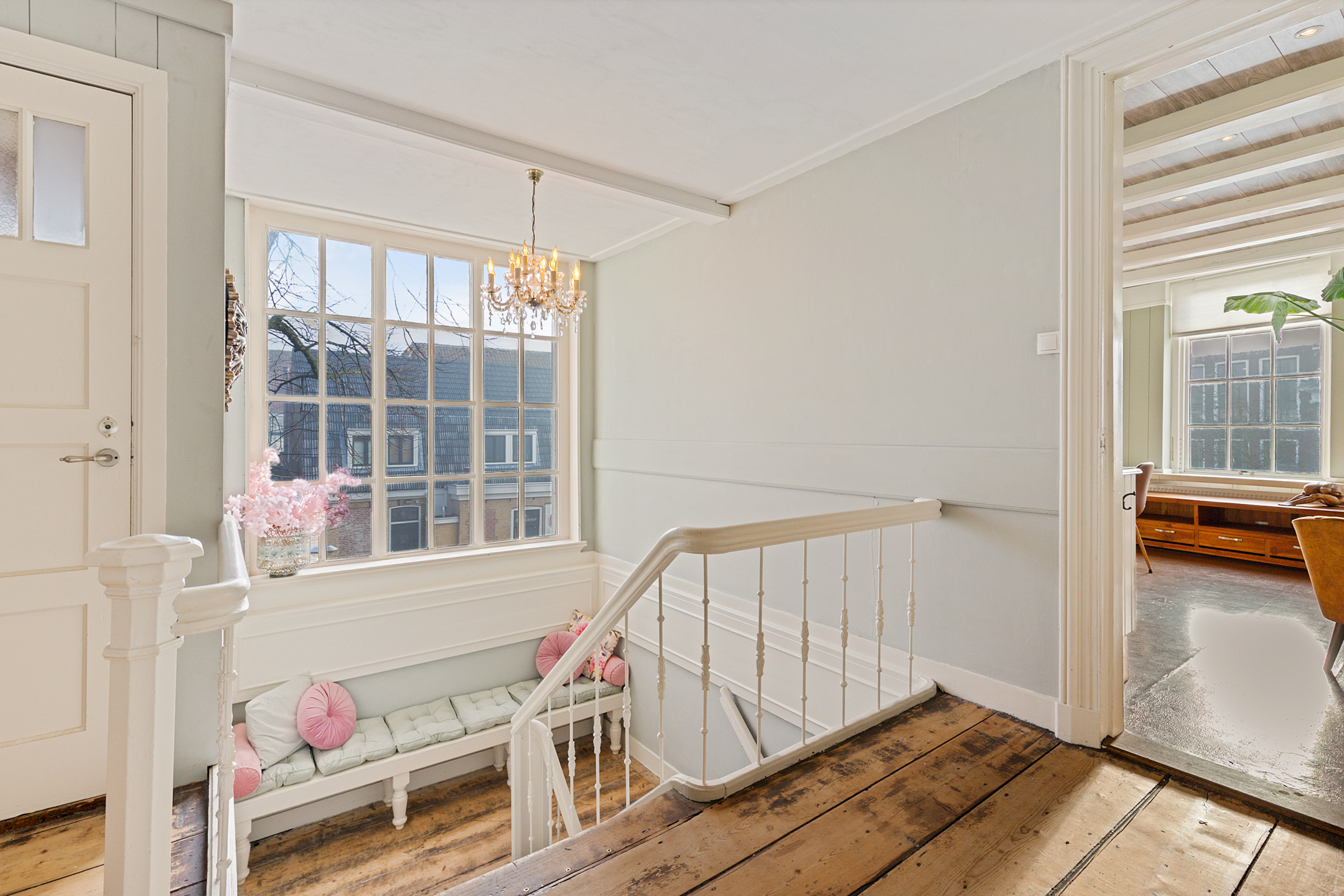 This deep canal house with two full residential floors a lodge hall, chapel, cellar and a striking attic loft beneath an exposed timber frame is an architectural icon. It tells a story reaching back to the seventeenth century a history of trade, prosperity, spirituality and culture. The ornate rocaille style entrance door, the mullioned windows, the sculpted façade stones with frieze and the carved stoop posts are tangible reminders of its rich past. The picturesque streetscape with benches in front of the historic façades forms the perfect setting for life at the Franekereind; convivial, stylish, atmospheric and within walking distance of all amenities.