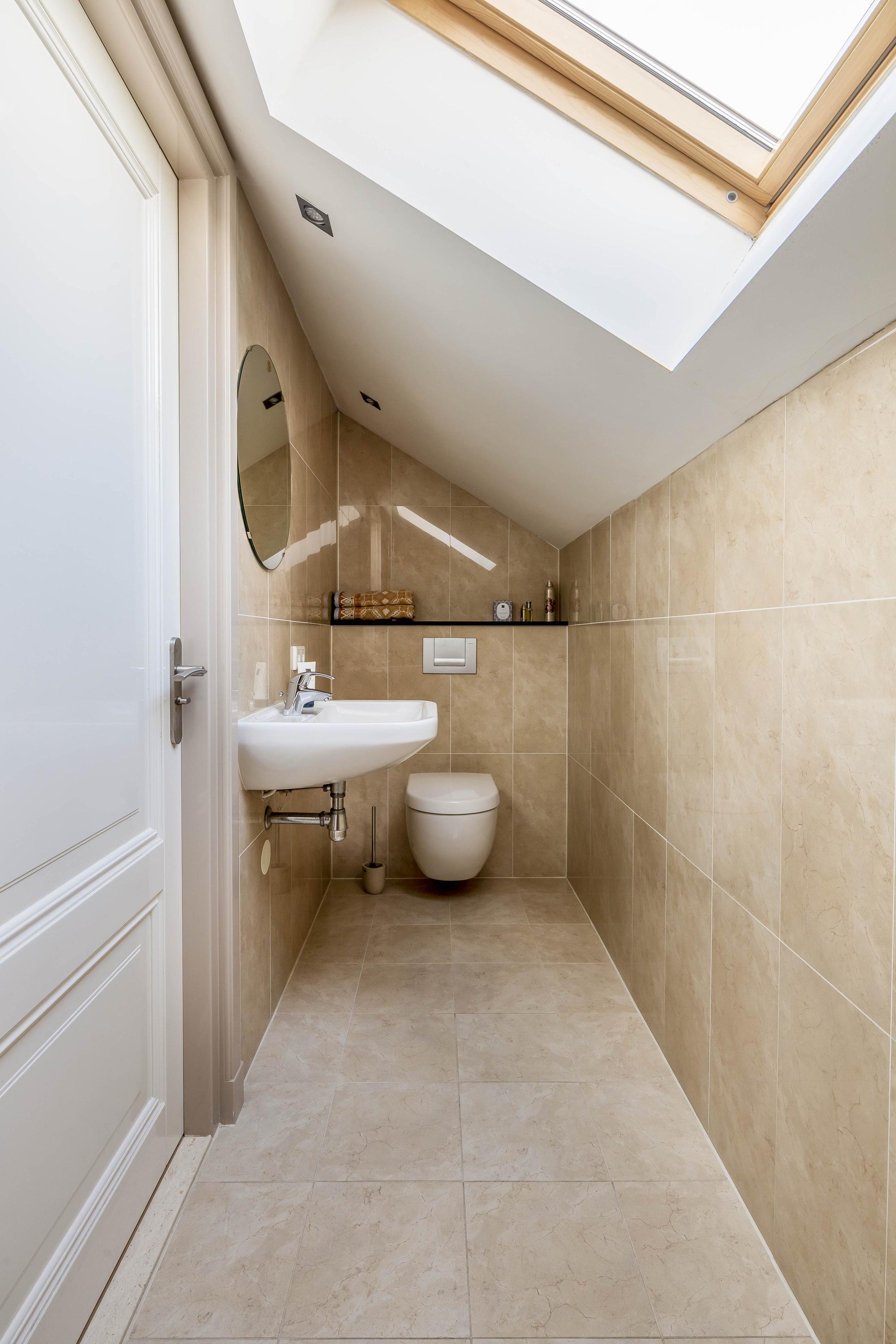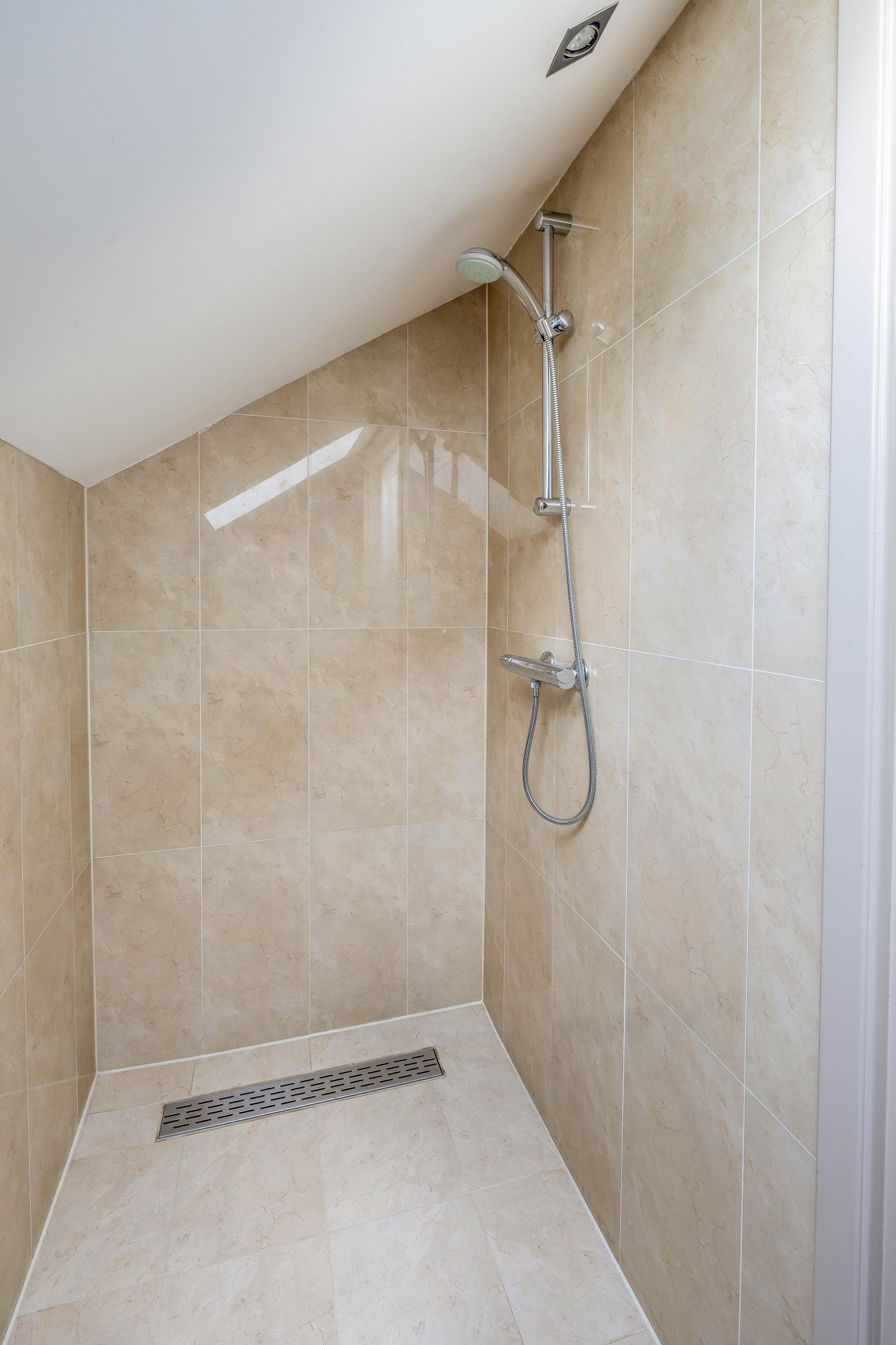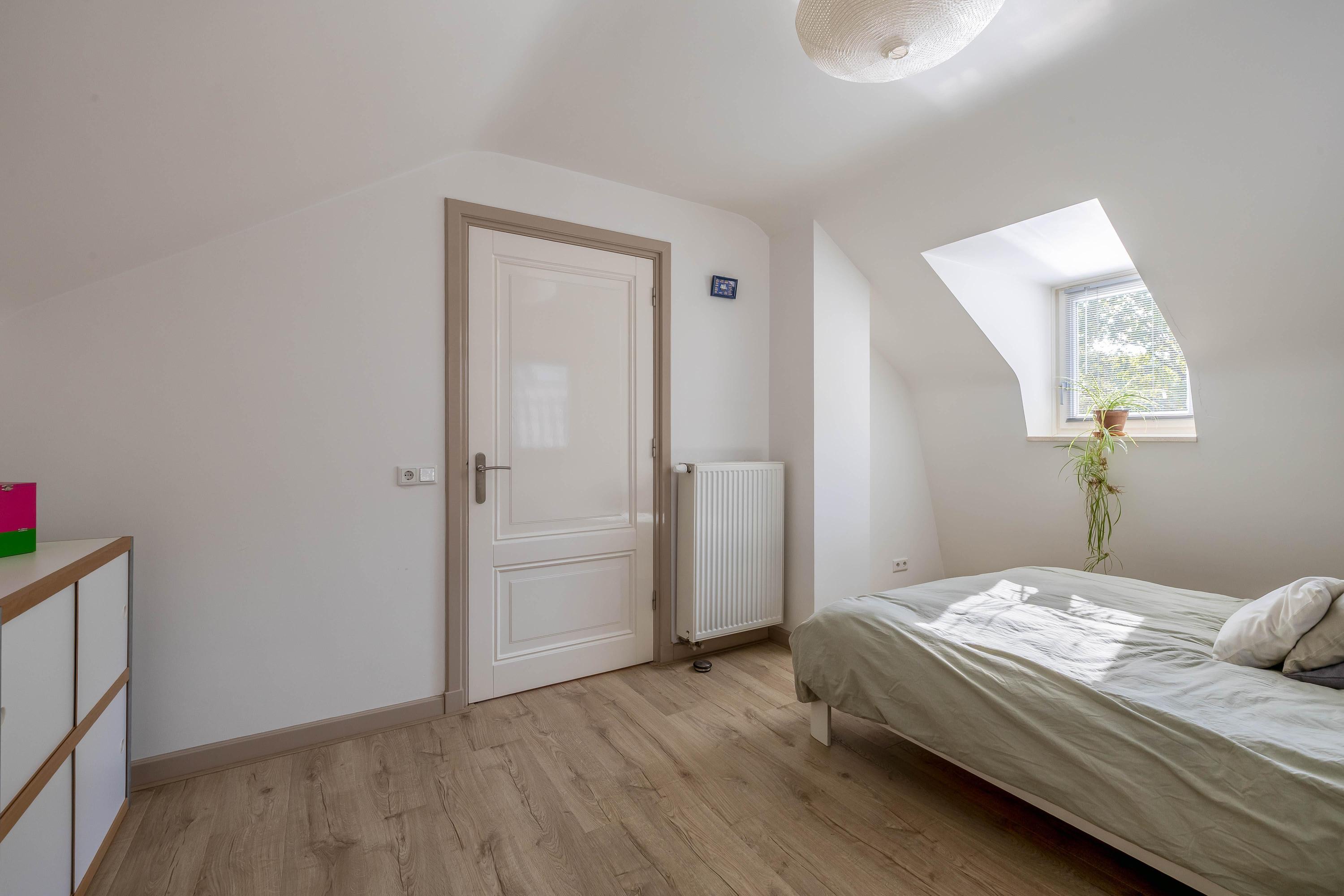 From the landing, you have access to two comfortable bedrooms, which are finished with laminate flooring and stucco walls and ceilings. A dormer window and two sets of windows provide natural light and ventilation. The second bathroom is also fully tiled and equipped with a walk-in shower, a washbasin and a floating toilet. A skylight provides sufficient natural light and fresh air. The practical central heating room/storage room has the central heating boiler (Nefit, Topline).