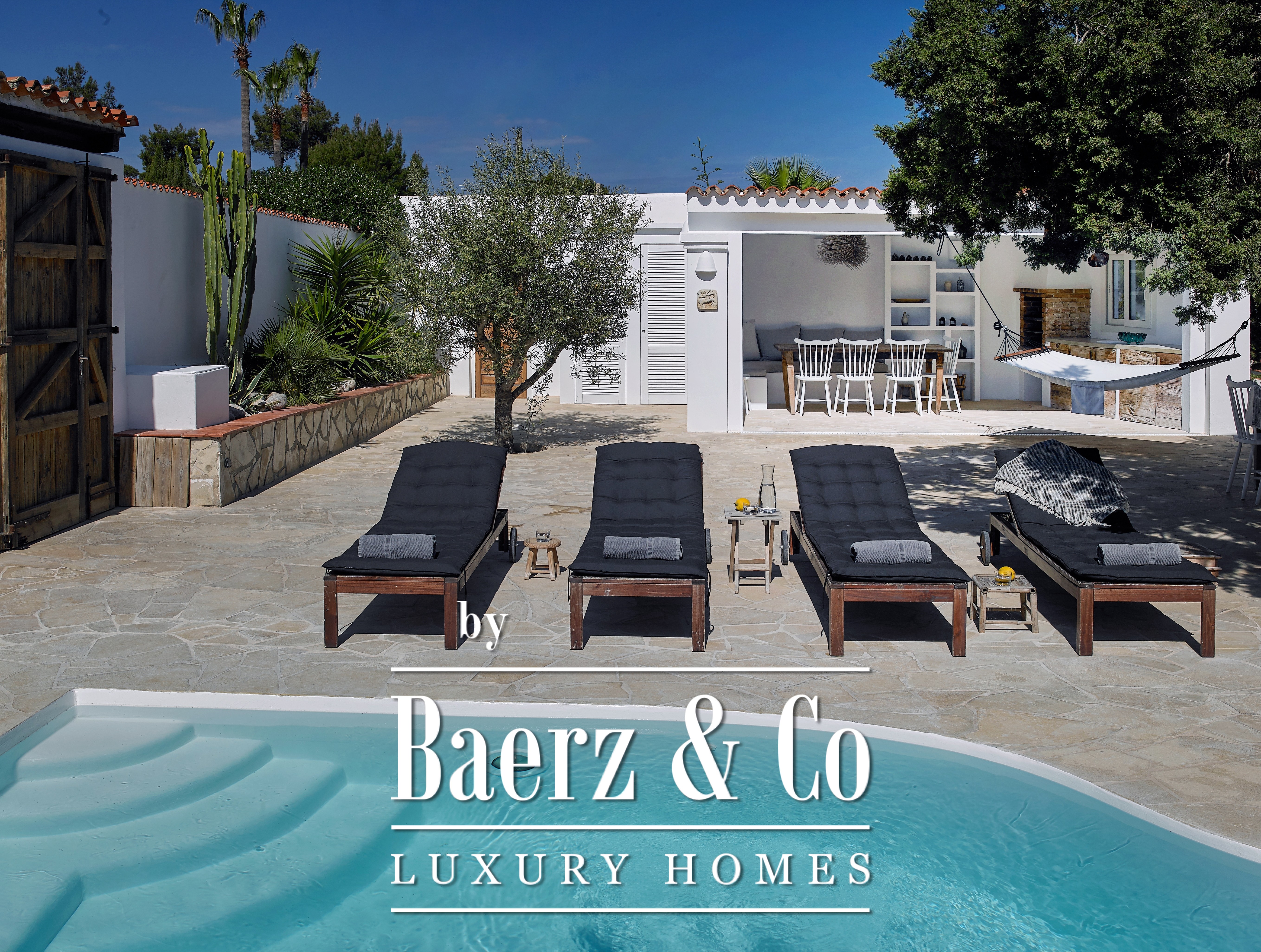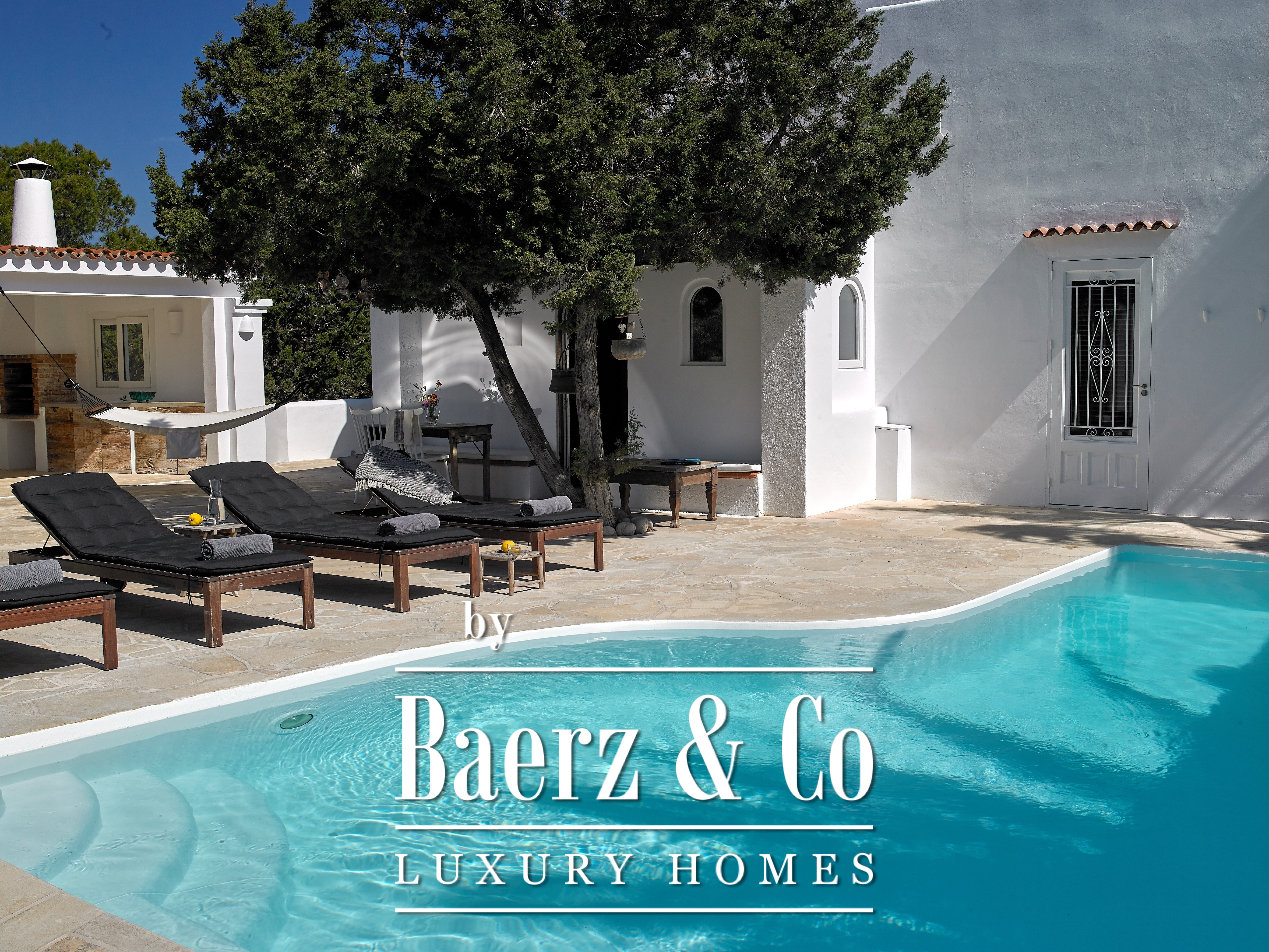 Flexible in use, the villa can function as one interconnected residence or remain as separate apartments. Outdoor spaces are designed for al fresco dining, relaxation, and the enjoyment of the Ibizan light. With nine bedrooms and seven bathrooms in total, two pools, roof terraces, and modern amenities such as an alarm system, this is a rare opportunity to own a versatile property in a setting of enduring appeal.