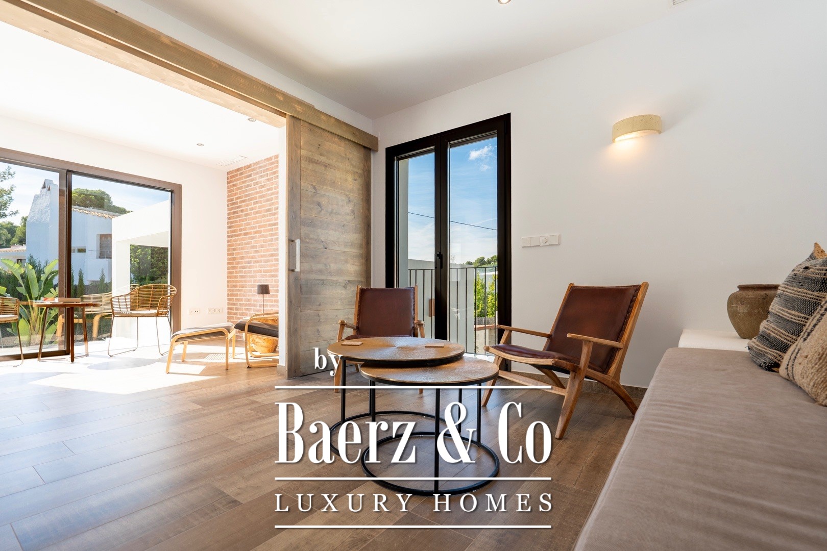 Do you dream of waking up to the sound of the waves of the Mediterranean Sea, feeling the gentle sea breeze, and being on an idyllic beach within a 3-minute walk? Then this villa is exactly what you are looking for. This modern, recently built property is located in a contemporary villa neighborhood, just behind the charming rocky beach of Cala Blanca. The villa is spread over two floors and enjoys a southern orientation. The heart of the home is the bright entrance hall, which also features the staircase and a convenient laundry room. From the hall, you enter the spacious living/dining room with a fully equipped open kitchen and an island. On the other side of the hall, you will find the master bedroom with an en-suite bathroom and a second bedroom with a separate bathroom. The upper floor offers a generous double bedroom with an en-suite bathroom and a private terrace. From this terrace, there is access to a large rooftop terrace where you can catch a glimpse
