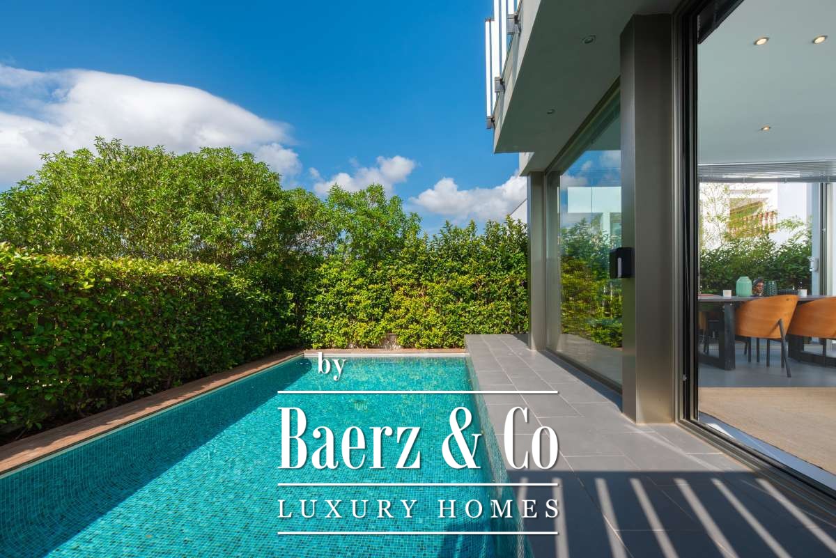 The SurroundingsLocated in the charming village of Jesús, this modern townhouse offers the perfect balance between tranquility and accessibility. Jesús is a vibrant and popular residential area with amenities open all year round, making it ideal for those seeking a permanent home or long-term stay in Ibiza. Within just a few minutes you can reach Ibiza Town, the exclusive Marina Botafoch and the beloved beaches of Talamanca and S’Estanyol. The village itself exudes Mediterranean charm with cosy restaurants, stylish cafés and boutique shops all within walking distance. Here you can enjoy a relaxed living environment while the energy and charm of the island are always close by.The TownhouseThis 178 m² townhouse with 120 m² of outdoor space is designed for comfortable and atmospheric living. On the ground floor, you are welcomed by a bright open-plan living area with warm materials and large sliding doors that beautifully connect indoor and outdoor living. The adjoining dining area and fully equipped kitchen create an inviting space for relaxed meals and social gatherings. Completing this level is a separate guest toilet and direct access to the private garage, ideal for parking and extra storage.On the first floor, you will find three comfortable bedrooms. The master