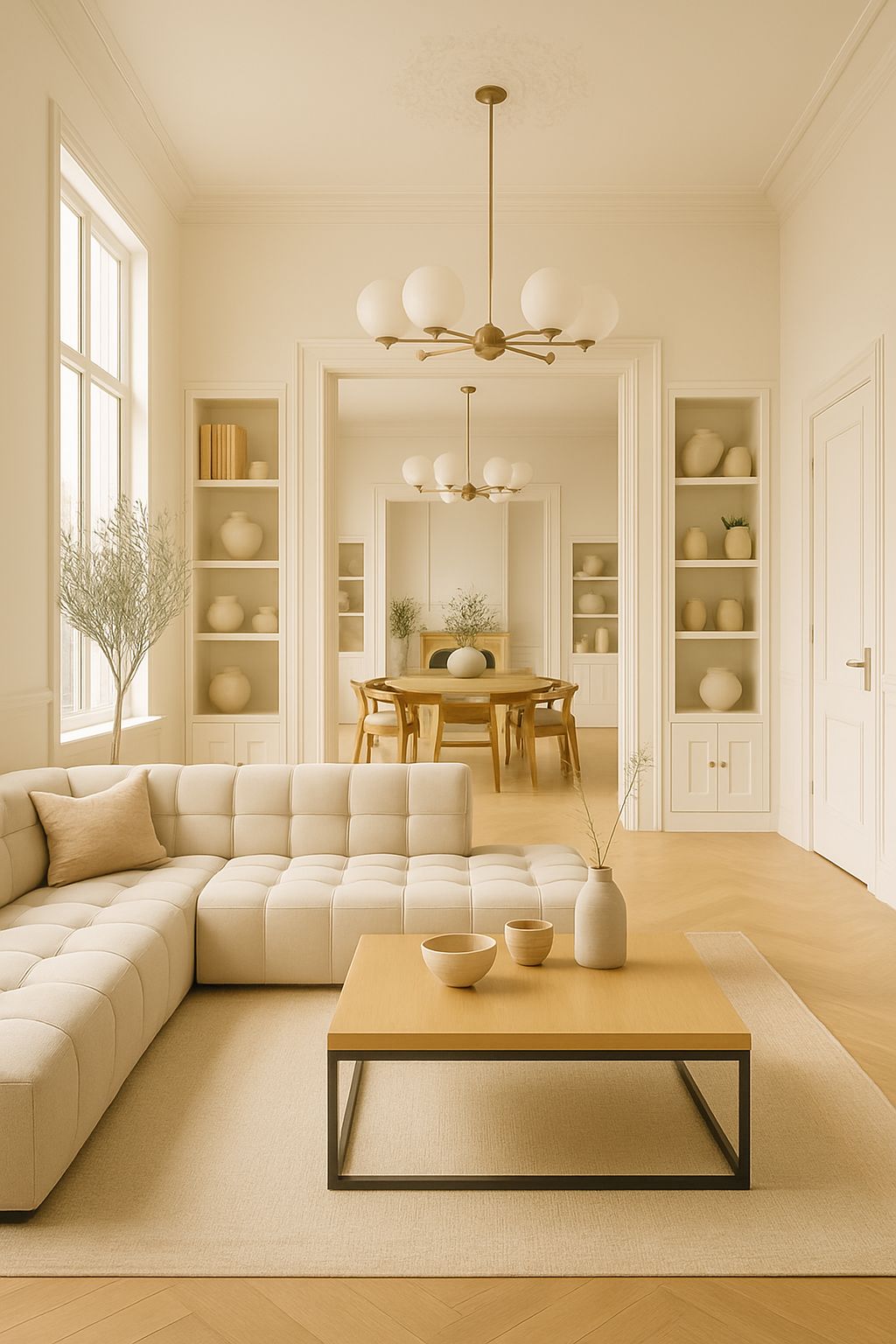 Through the right-hand entrance you enter the residential area, where the original trough vault and characteristic floor tiles instantly set the authentic tone. The charming garden room at the rear features richly decorated French doors opening onto the terrace and the deep, sun-filled patio garden with double rear access. The spacious cellar provides the perfect space for a fine wine collection.