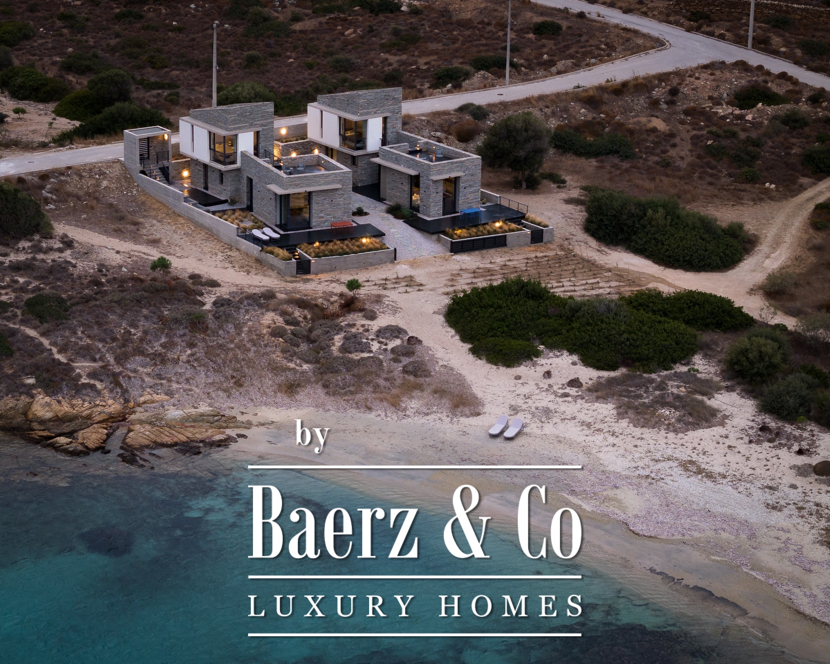 Villa for sale Karystos beachfront presents a rare opportunity to inhabit the Greek coast with an immediacy to the sea seldom encountered. Positioned at the threshold of the Aegean, this property covers 240 m² of refined interiors distributed across two independent stone villas, all within a 650 m² plot that unfurls directly onto pristine white sands. The uninterrupted, panoramic views of the sea accompany daily life, offering a continual interplay of light, air, and horizon.