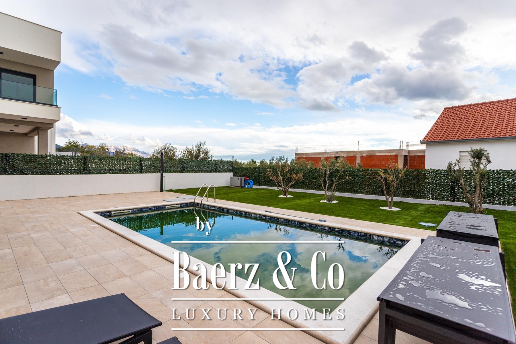 Villa Kaštela presents 300 m² of refined living on a 550 m² plot, positioned within a newly developed private resort on the route from Split to the airport. This villa Kaštela harmonizes indoor and outdoor living, offering a heated outdoor pool that captures open sea views and a sequence of terraces that invite both sunlight and serene evenings.