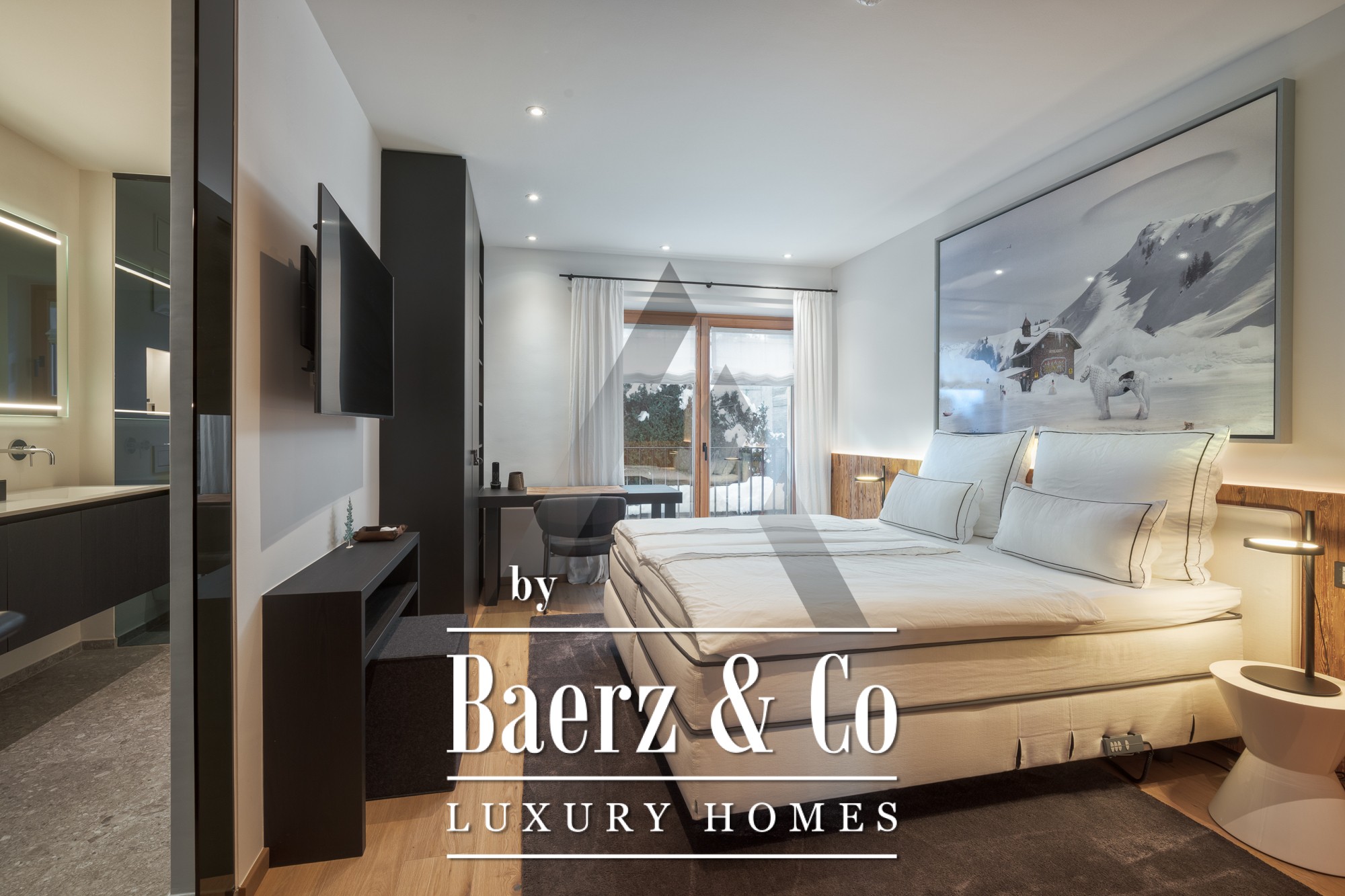 Attention to detail includes Occhio designer lighting, geothermal heating, air conditioning, and an elevator. A 2-car garage and outdoor parking accommodate both vehicles and equipment for alpine pursuits. All interior fittings, custom finishes, and furnishings curated by a renowned designer are included.